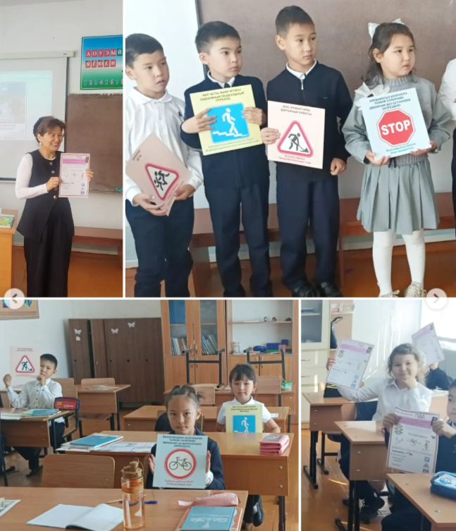 Іс-шара интерактивті түрде өтті: олар кубик Рубиктің сұрақтарына жауап берді, викторинаға қатысты, жол қозғалысы ережелері бойынша жұмбақтарды тауып, карталардан «жол белгілерін» жинады. Балалар талқылауға белсене қатысып, сұрақтарға қызығушылықпен жауап берді.