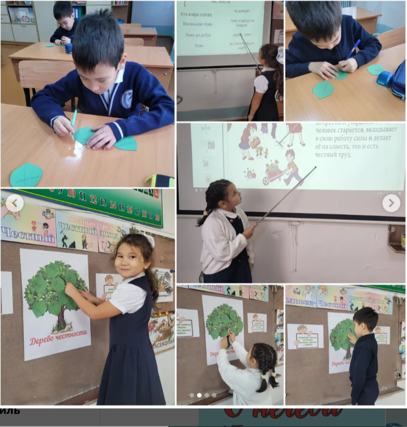 В рамках реализации ценности за ноябрь месяц Единой воспитательной программы" Адал азамат "" Справедливость и ответственность “ во всех классах прошли классные часы на тему ” Адал азамат-Адал еңбек-Адал табыс"-«Честный человек-Честный труд-Честный доход», уроки безопасности на тему " Здоровье сберегающие привычки " и "Подростковые и трудовые отношения".