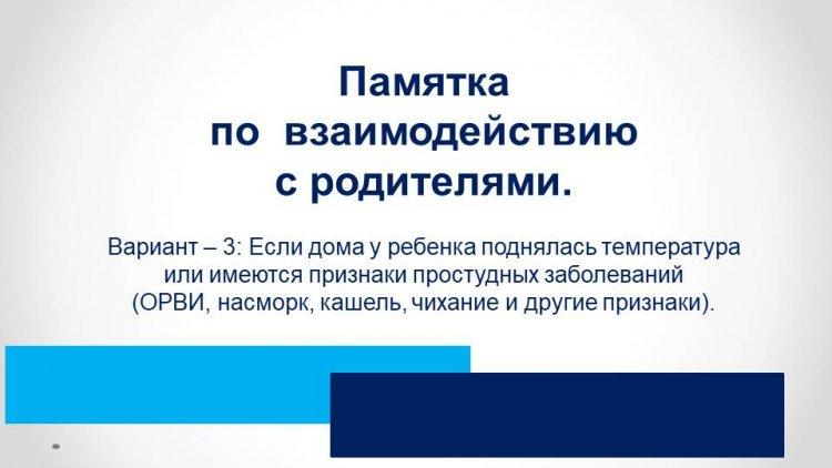 Памятка по взаимодействию с родителями (Если дома у ребенка поднялась температура или имеются признаки простудных заболеваний(ОРВИ, насморк, кашель, чихание и другие признаки) » КГУ «Коростелевская средняя школа»