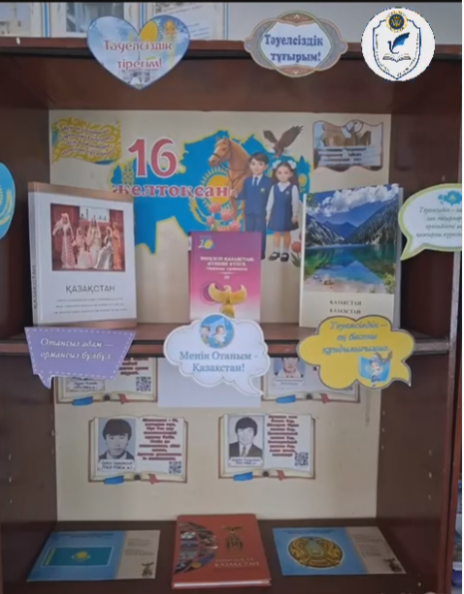 «Адал азамат» жобасы аясында кітапханада Қазақстан Республикасының Тәуелсіздік күніне орай кітап көрмесі ұйымдастырылып, 4 «Б» сынып оқушыларымен әңгіме-сұхбат өткізілді.