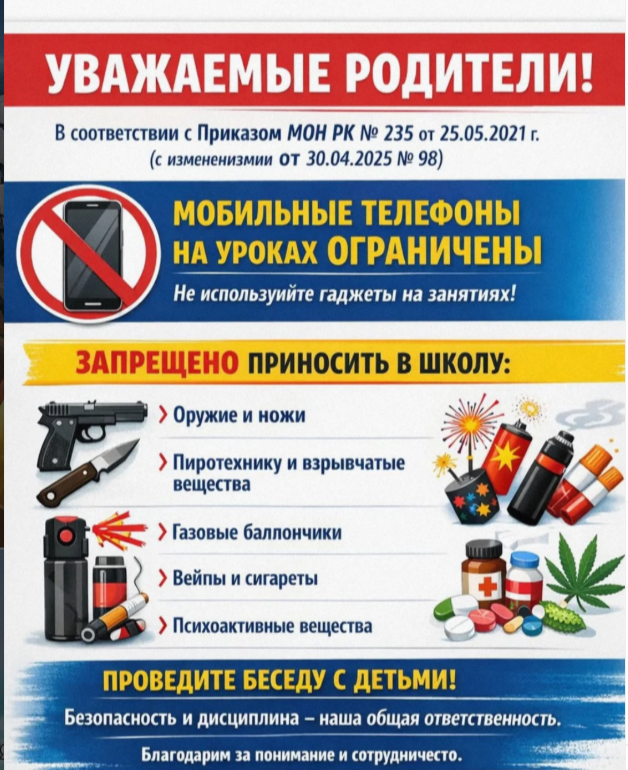 В соответствии с Приказом Министра образования и науки Республики Казахстан № 235 от 25.05.2021 г. (с изменениями от 30.04.2025 № 98) обращаем особое внимание на соблюдение установленных требований в организациях образования.
