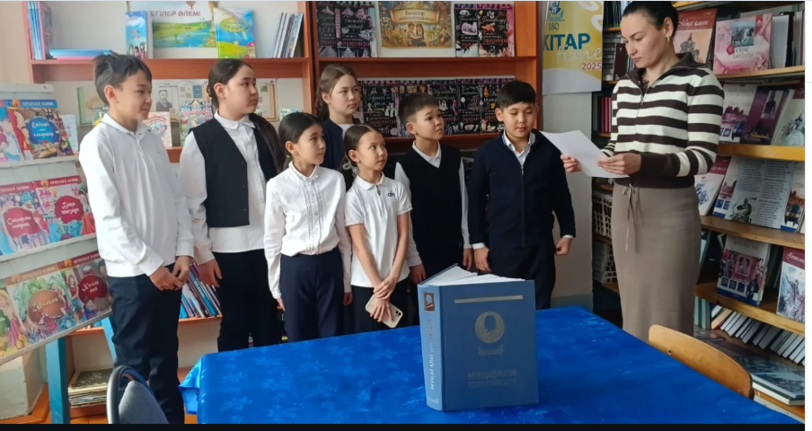 В честь 95-летия акына Мукагали Макатаева в школьной библиотеке был организован конкурс по выразительному чтению «Жырлайды жүрек».