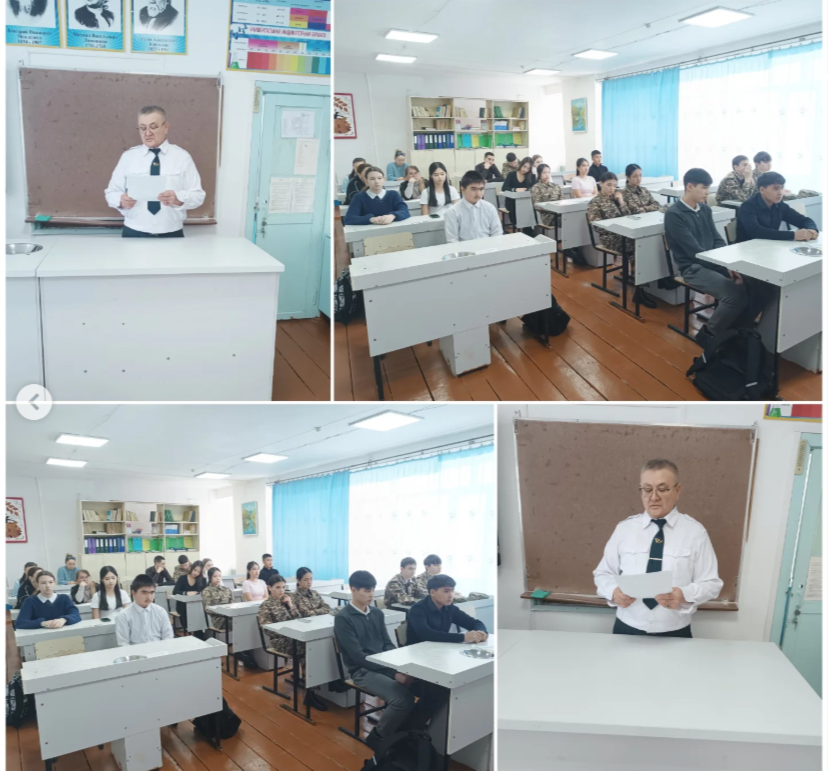2026 жылғы 19 ақпанда АӘ және ТД ұйымдастырушысы С.Алинов 9-11 сынып оқушылары арасында «Терроризм актісі туралы жасырын хабарламалар» тақырыбында дәріс өткізді. Дәріс барсысында оқушылар егер адам лаңкестік туралы жалған шақыру жасаса не болатынын білді.