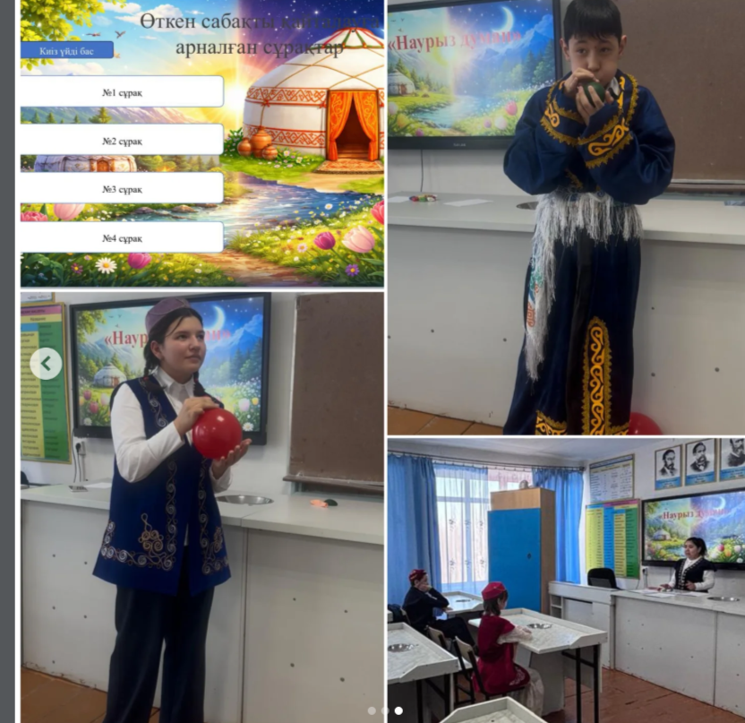 "Адал азамат" біртұтас тәрбие бағдарламасының наурыз айындағы «Тәуелсіздік және патриотизм» құндылығын іске асыру аясындағы "Наурызнама онкүндігі" жоспарына сай 16 наурыз- Мәдениет және ұлттық салт-дәстүр күні 7 «Б» сынып оқушылары арасында қазақ тілі мен әдебиеті пәнінің мұғалімі А.Ғ.Зүлкәрәмованың ұйымдастыруымен «Қазағымның салт-дәстүрі» тақырыбында зияткерлік сайыс өткізілді.