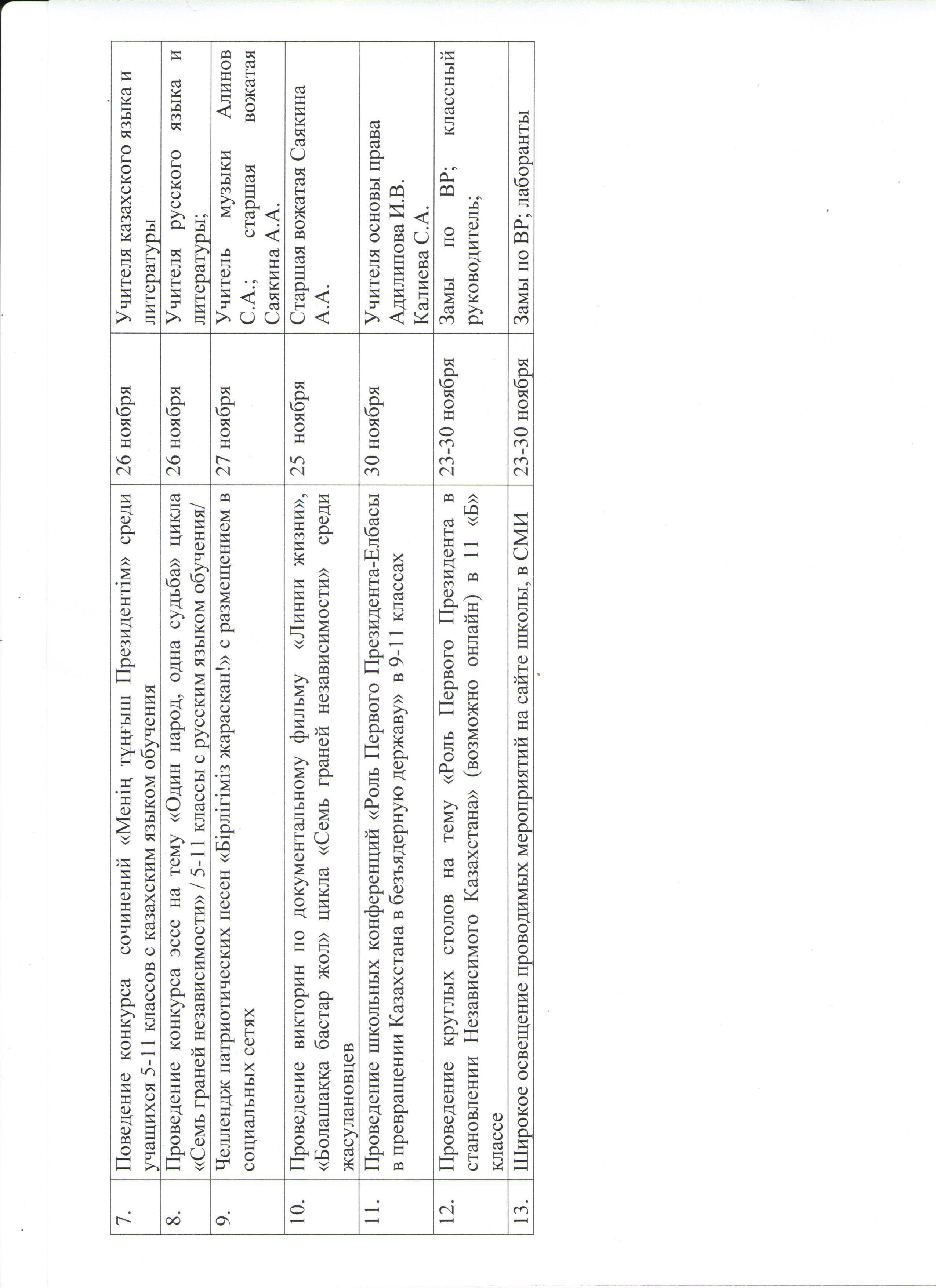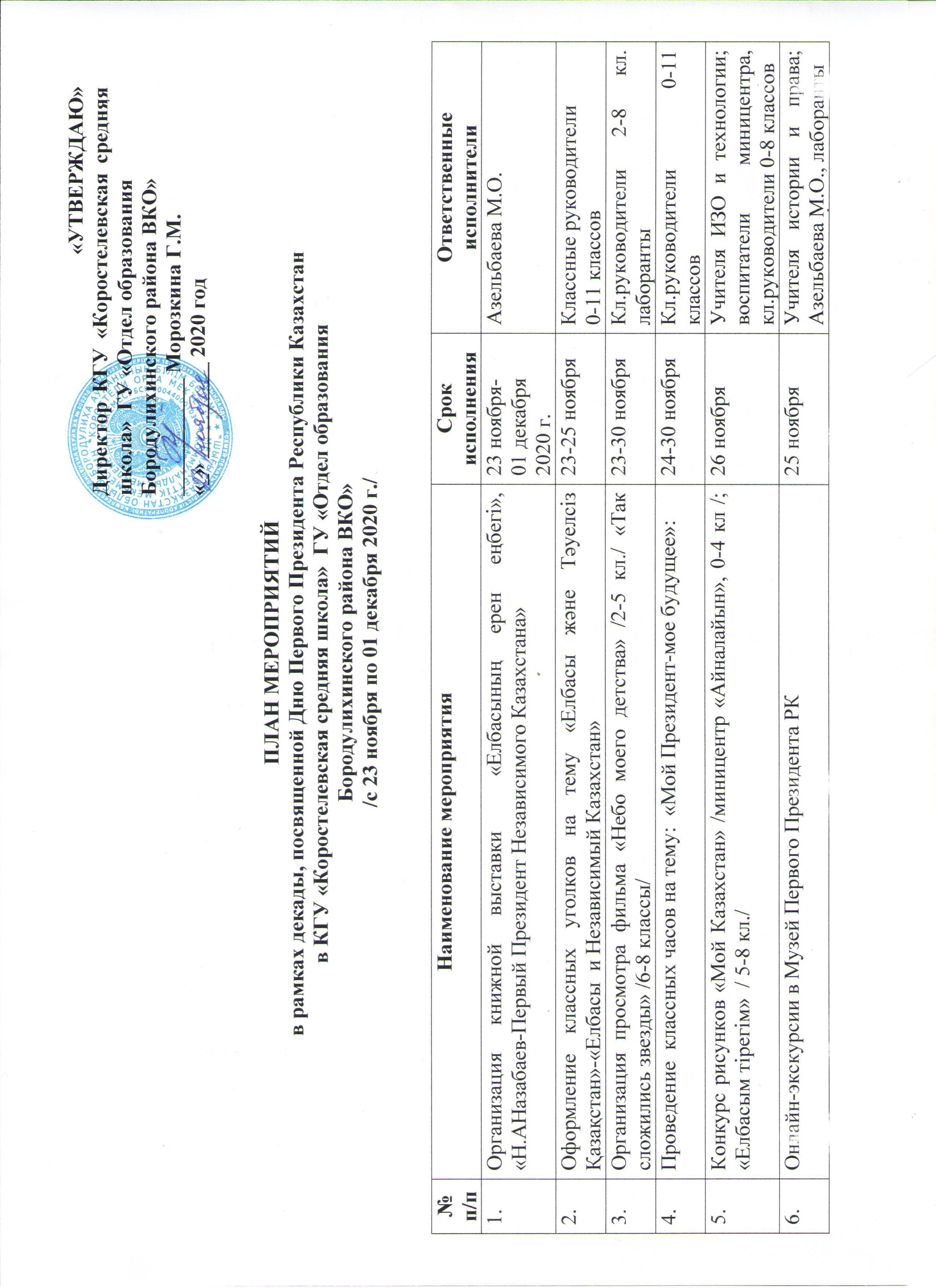 23 ноябрь 2020 0 1 2 3 4 5 План мероприятий в рамках декады, посвященной Дню Первого Президента Республики Казахстан