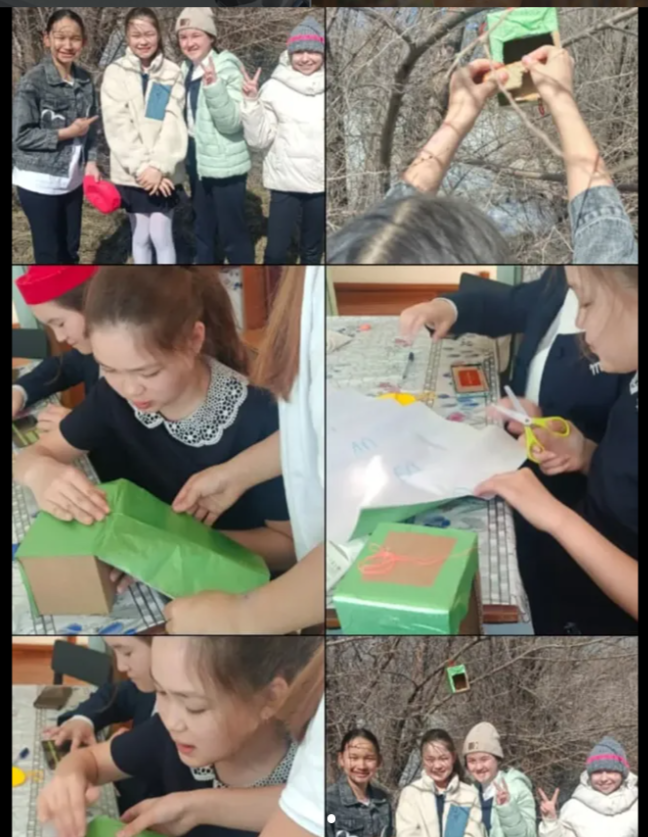 Оқушылар құстарға арналған жемшашарлар және құстар ұясын жасап ағаштарға іліп құстарды тамақтандырды.