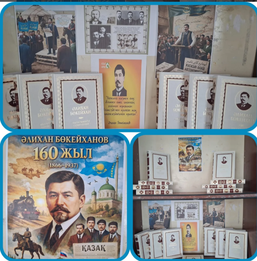 В библиотеке школы была оформлена книжная выставка к 160- летию со дня рождения Алихана Бокейханова ( 1866-1937)- выдающегося казахского общественного деятеля, лидера партии "Алаш" и главы правительства "Алаш- Орда".