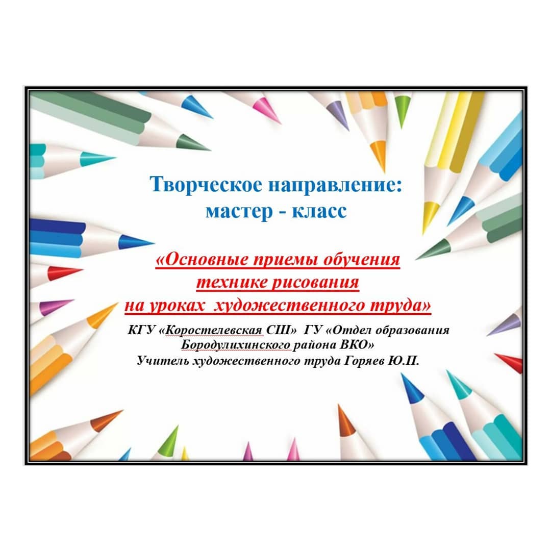 По плану организации досуга учащихся на период школьных каникул с 31 декабря 2020 года по 10 января 2021 года по творческому направлению учитель ИЗО и технологии нашей школы Горяев Юрий Платонович провел онлайн-мастер класс для учащихся района на тему «Основные приемы обучения технике рисования на уроках художественного труда».