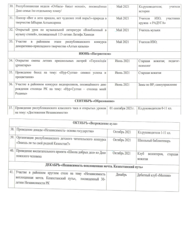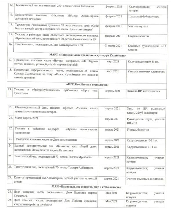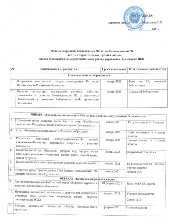 План мероприятий, посвященных 30 - летию Независимости РК » КГУ «Коростелевская средняя школа»
