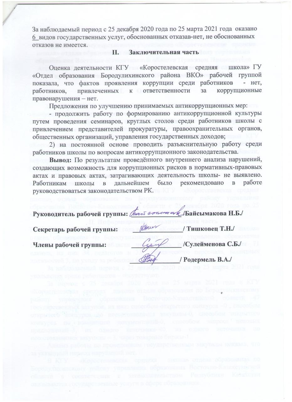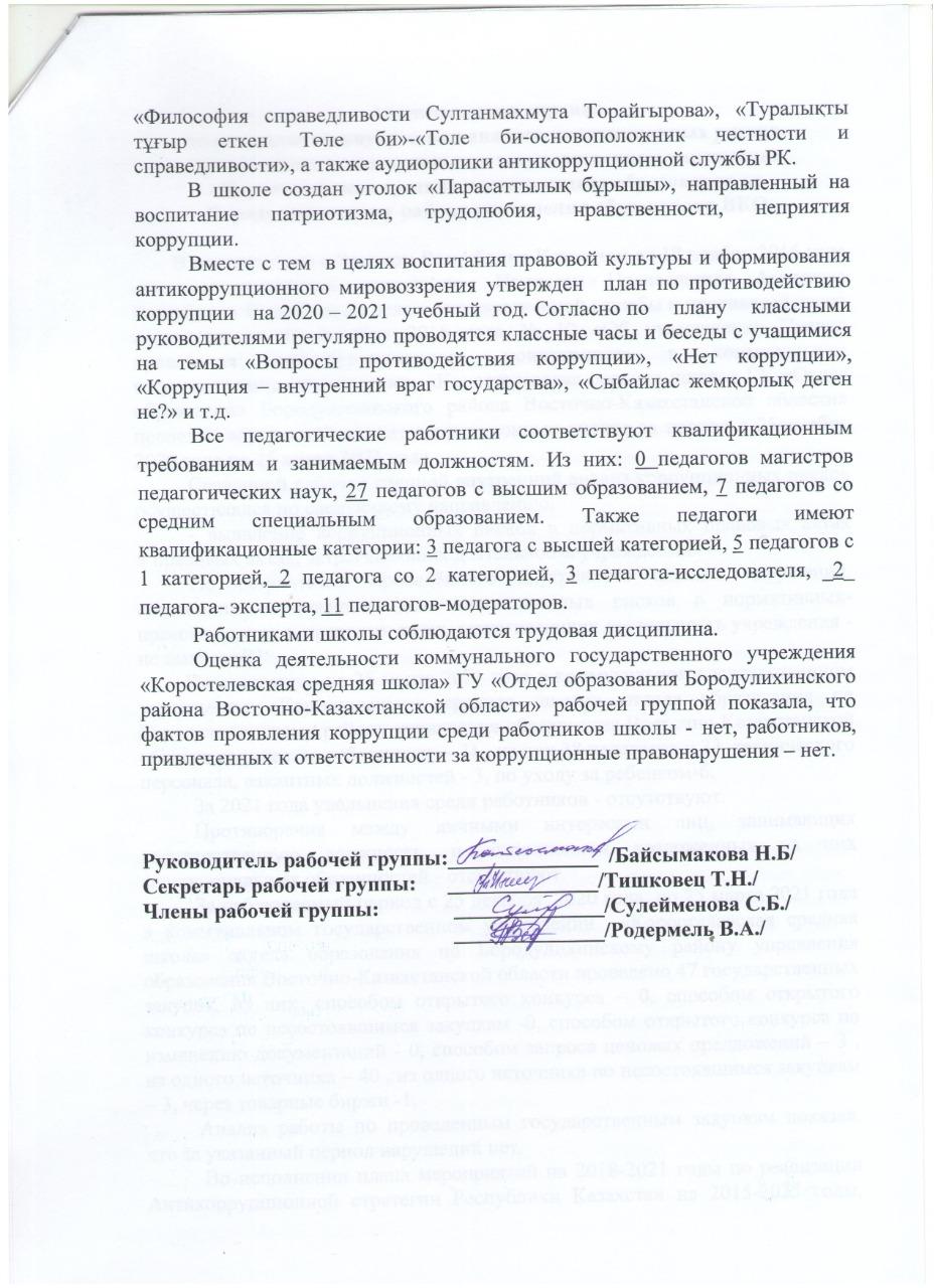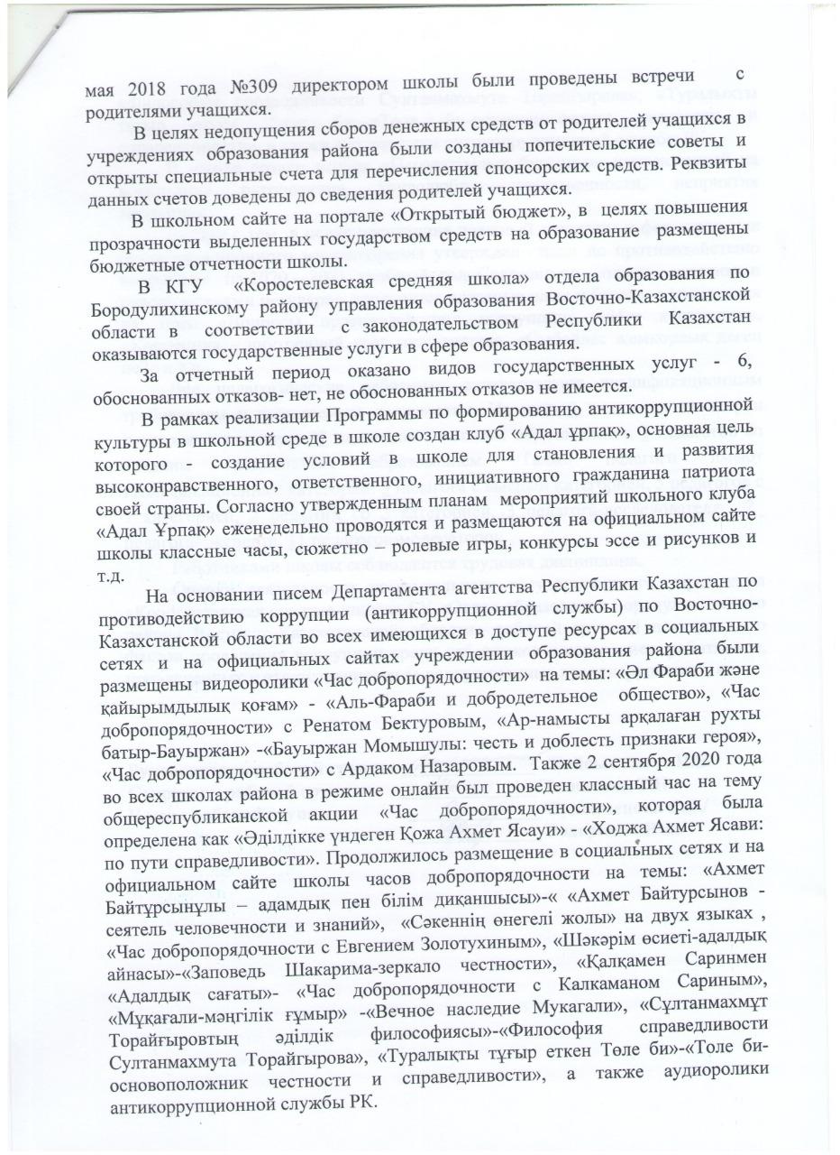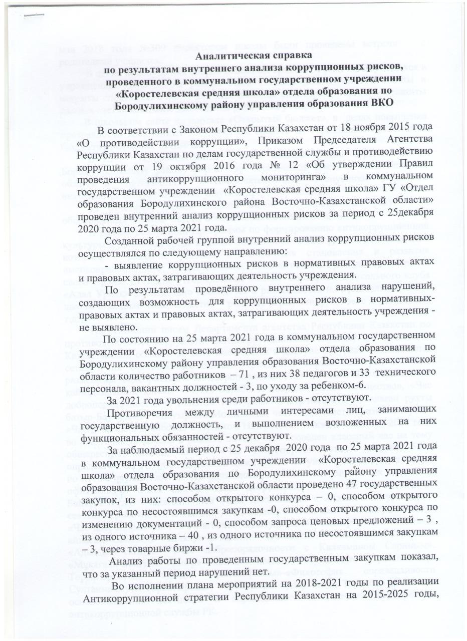 Антикоррупционный мониторинг » КГУ «Коростелевская средняя школа»