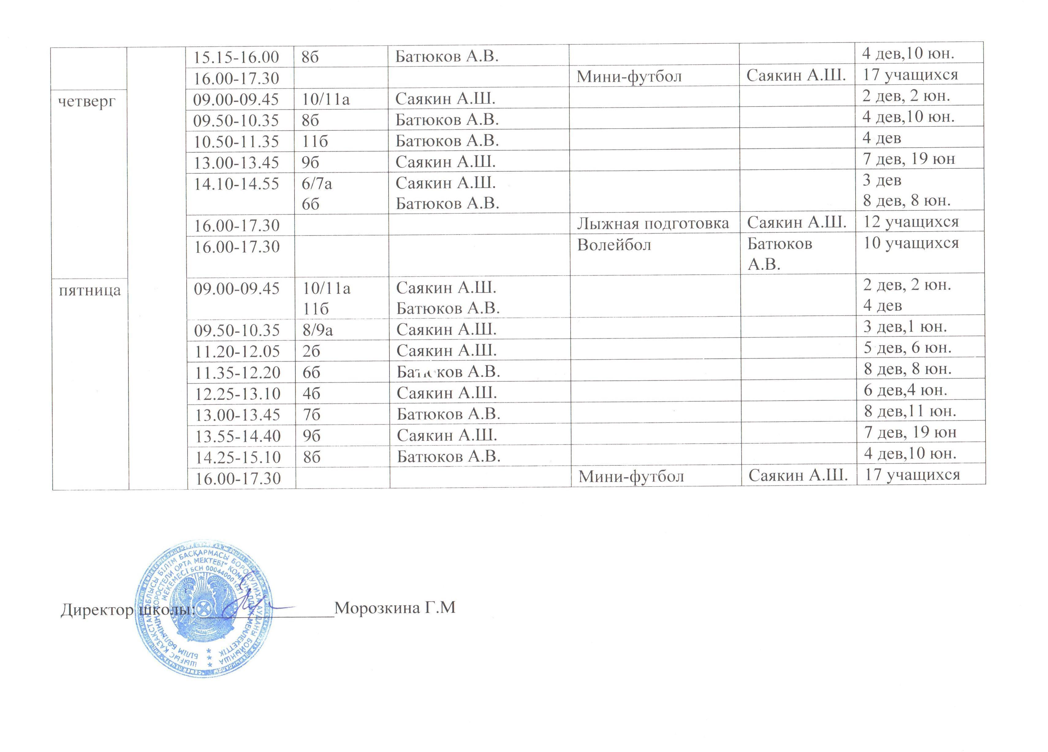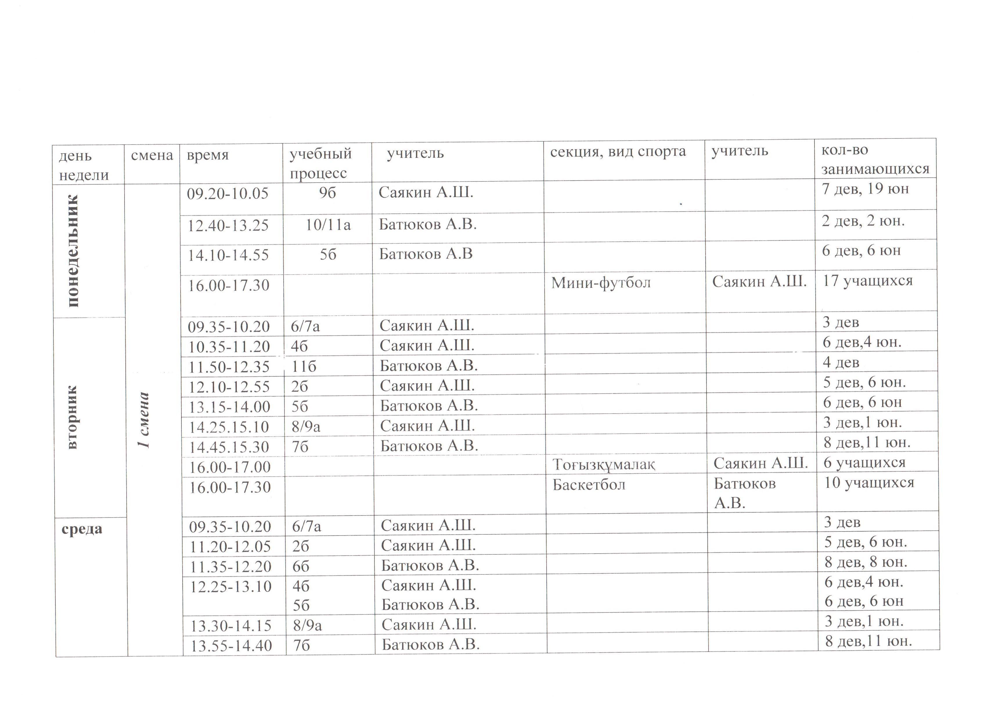 График работы спортивного зала » КГУ «Коростелевская средняя школа»