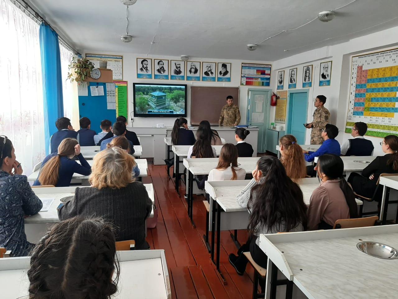 ҚР ҰҚҚ Шекара қызметкерлері мен 9-11 сынып оқушыларының кәсіптік бағдар тақырыбындағы кездесуі