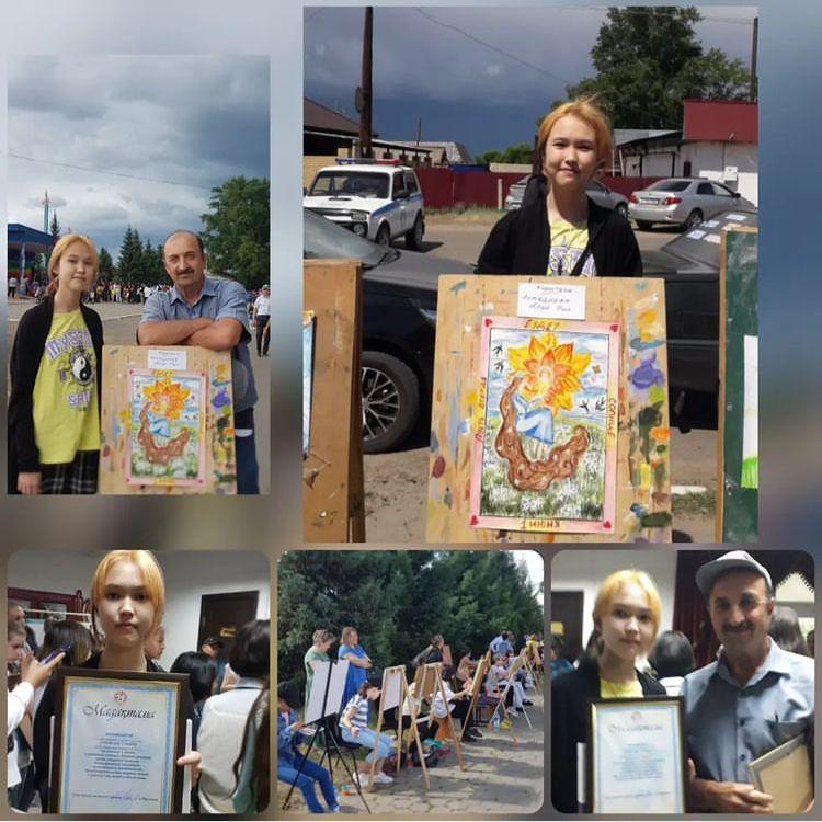 В районном конкурсе детских рисунков среди учащихся 7 классов "РАЗНОЦВЕТНЫЙ МОЛЬБЕРТ" 🎨 посвящённого празднованию Международного дня защиты детей, в рамках года детей в Казахстане за занятое 1️⃣🥇 место награждена ученица 7 "б" класса КГУ "Коростелевская СШ" АХМАДИЕВА АЛУА.
