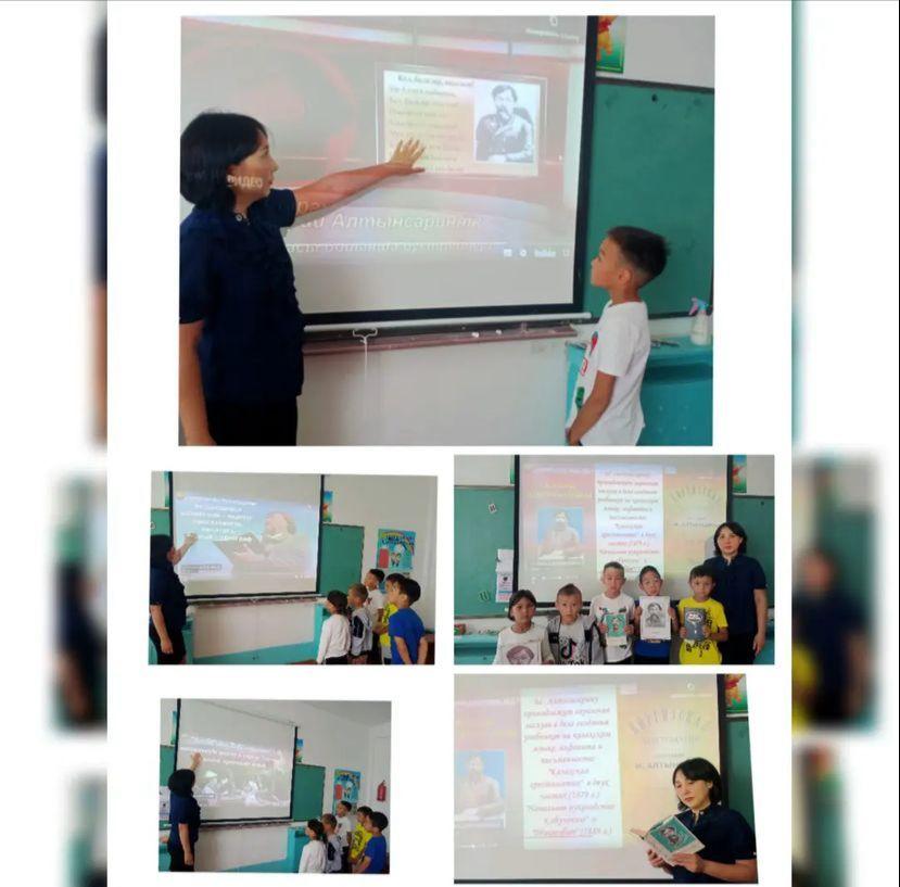 Қазақтың көрнекті ақын-жазушысы Ы.Алтынсариннің өмірімен, оның шығармашылығымен жақынырақ танысу мақсатында 1-2 сынып оқушыларымен "Кел балалар оқылық"атты танымдық сағат өтті."Оқуға құштар мектеп"жобасы аясында оқушылар өлеңдерді сүйіп оқуға, оқығанды түсіне білуге үйрету.
