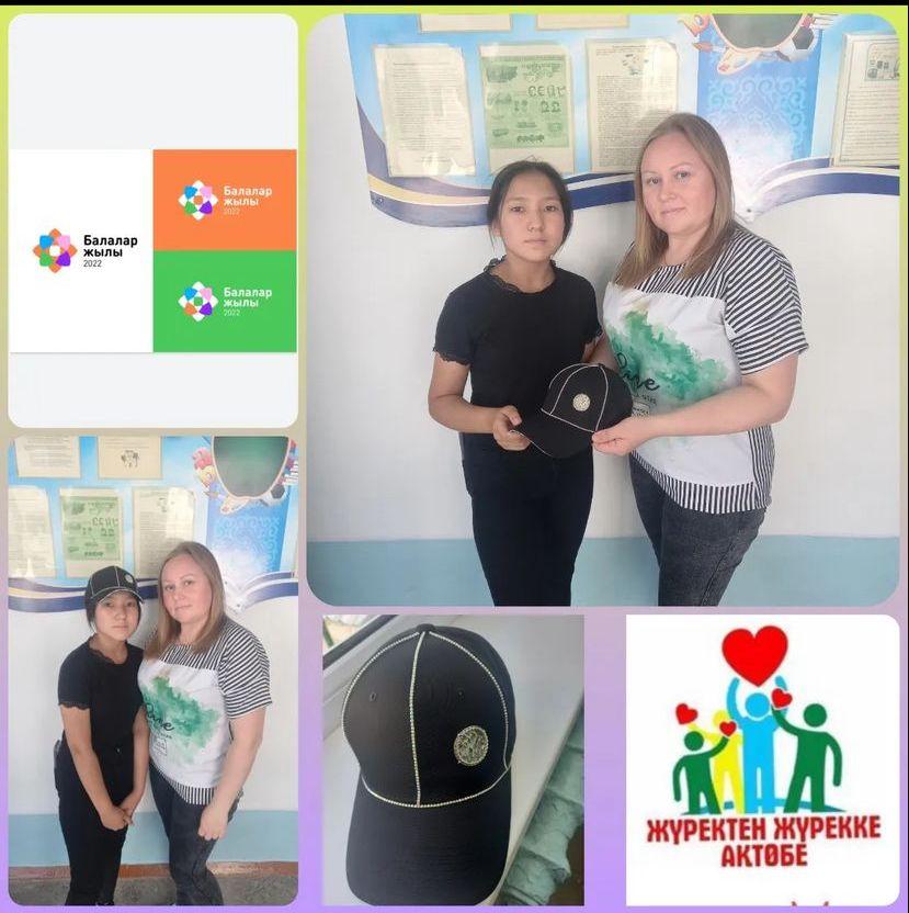 Акция " ОТ СЕРДЦА К СЕРДЦУ 💕" Воспитатель мини-центра "Айналайын" Шаукенова Е.Г. по желанию ученицы 7 "а" класса Еділқызы Марал подарила бейсболку.