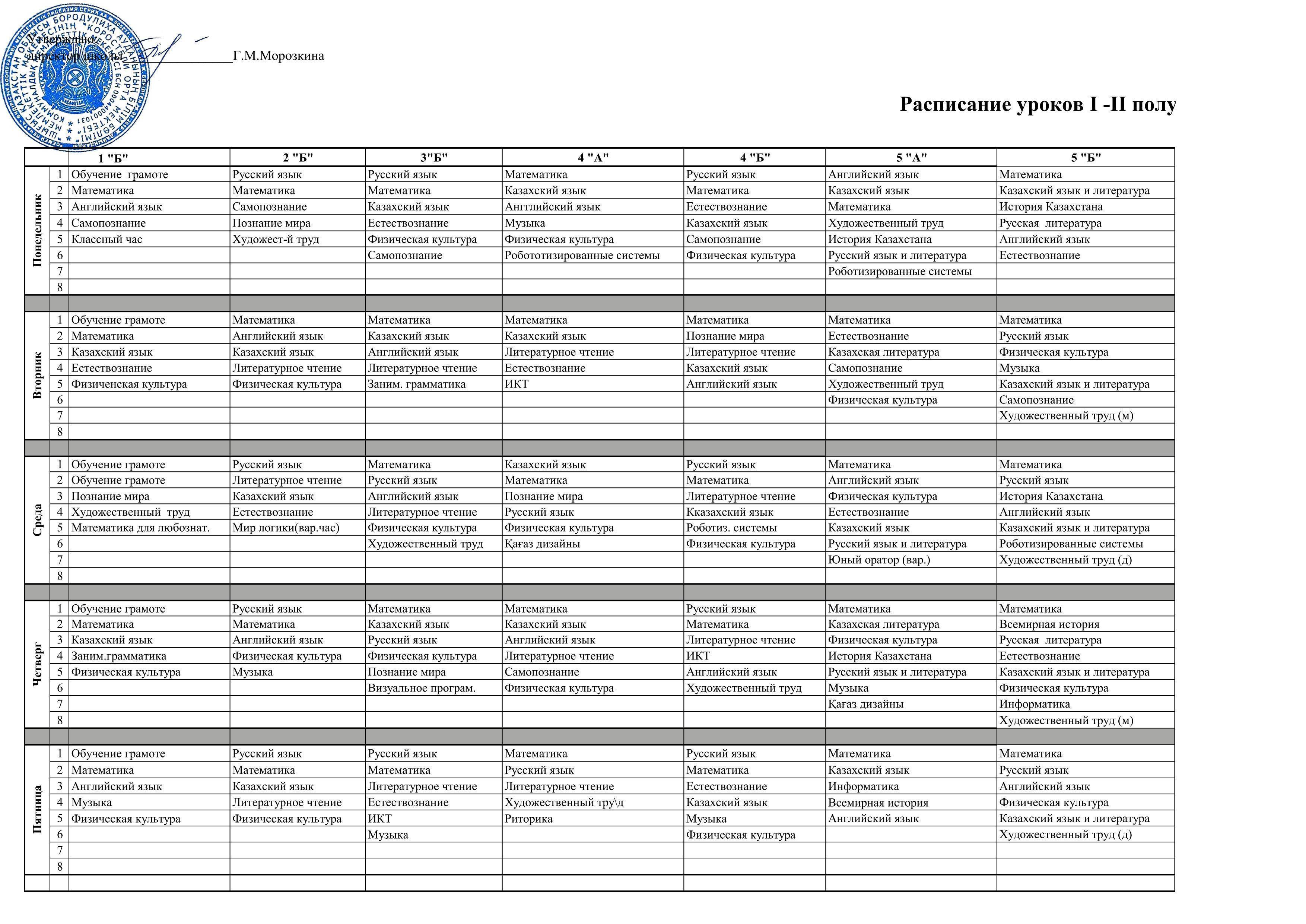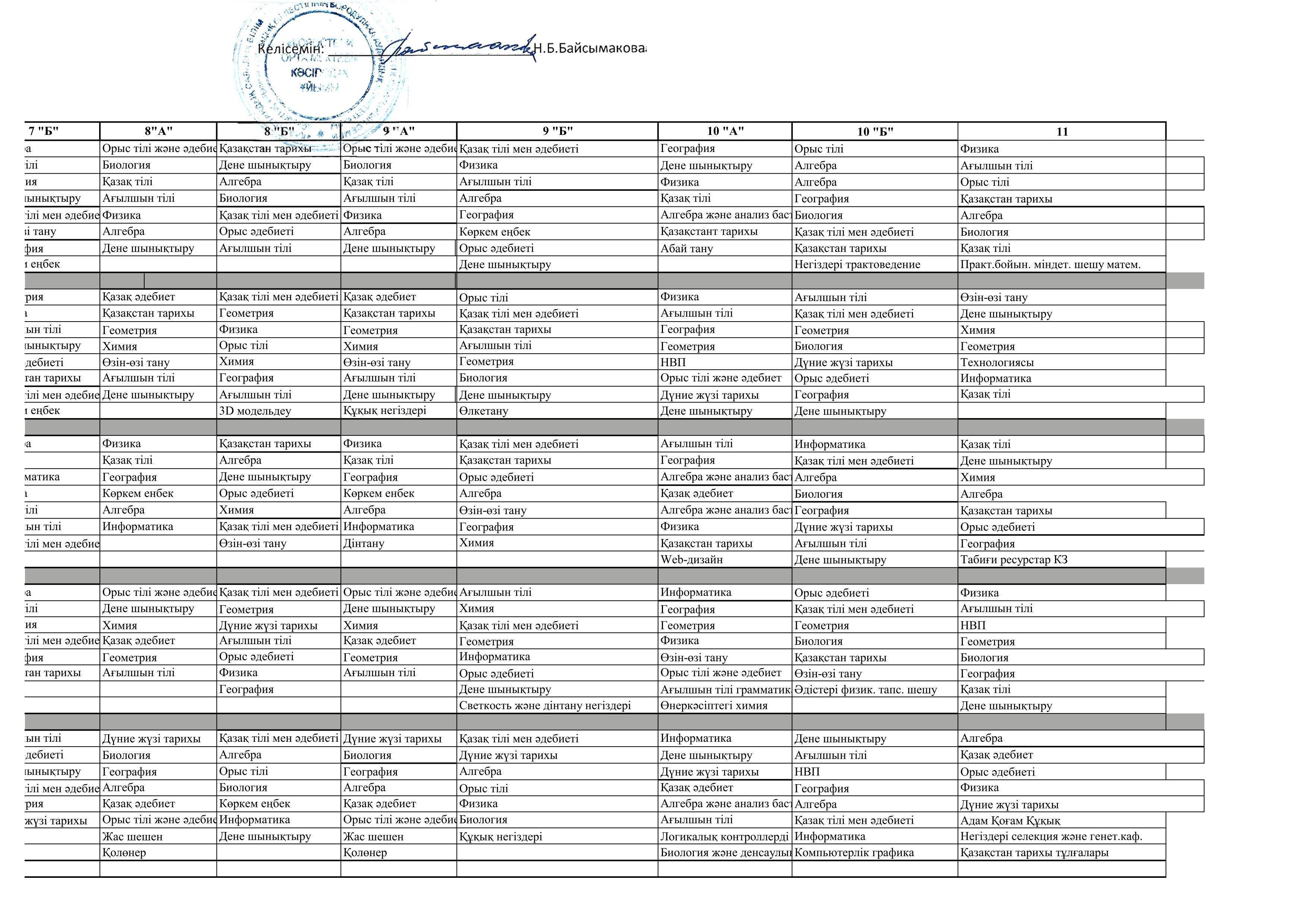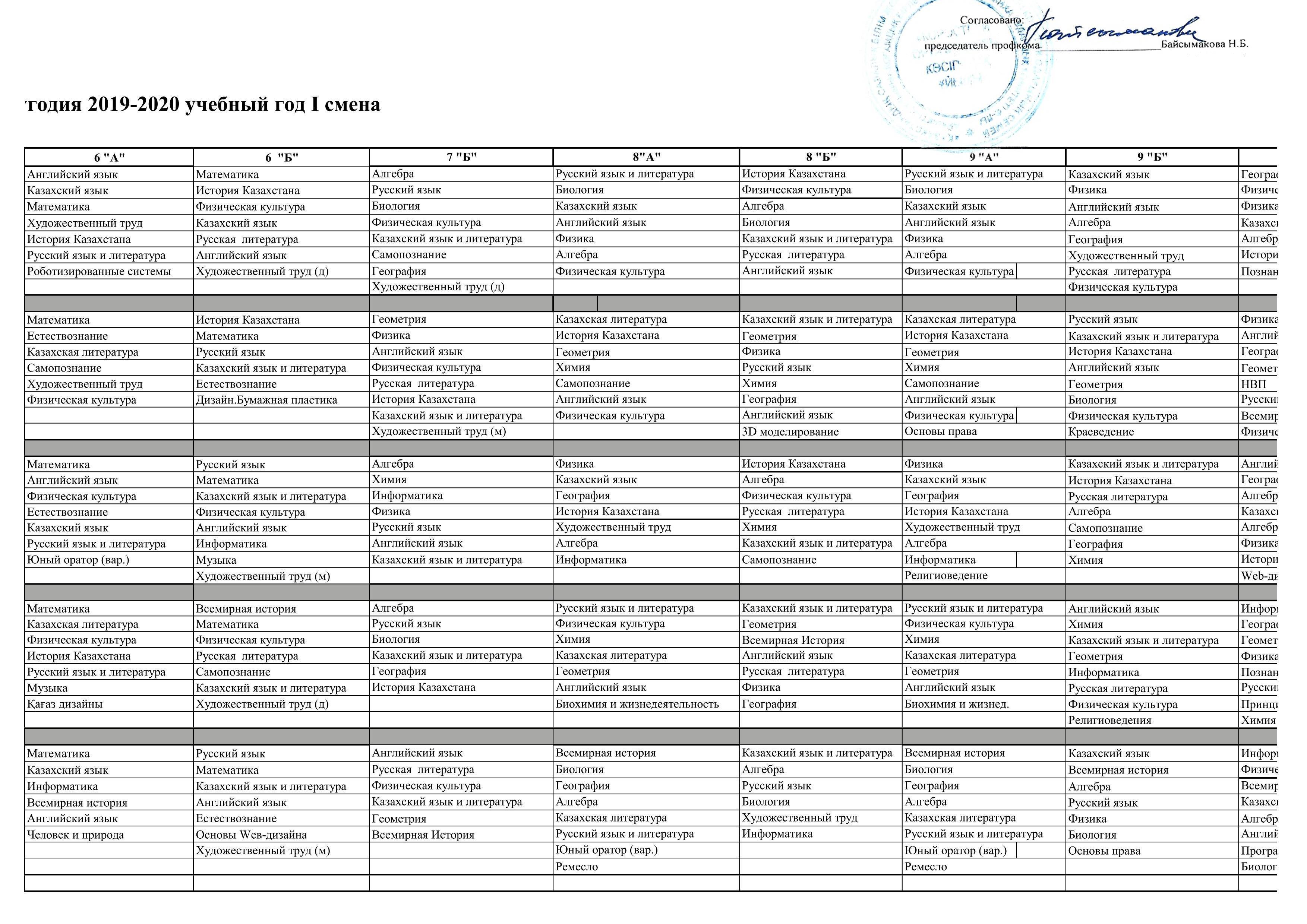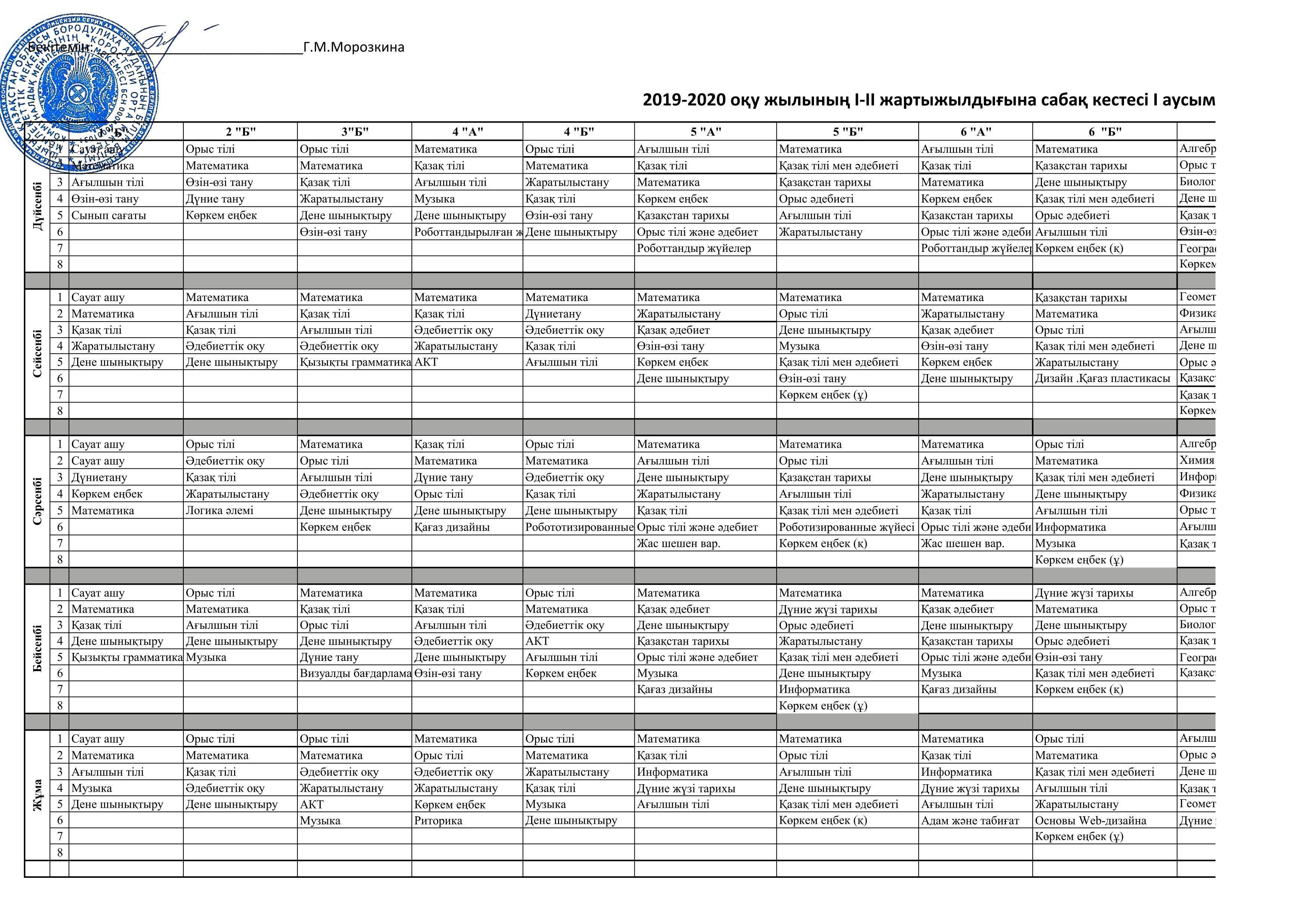 02 сентябрь 2019 0 1 2 3 4 5 2019-2020 оқу жылының сабақ кестесі/ Расписание уроков на 2019-2020 учебный год