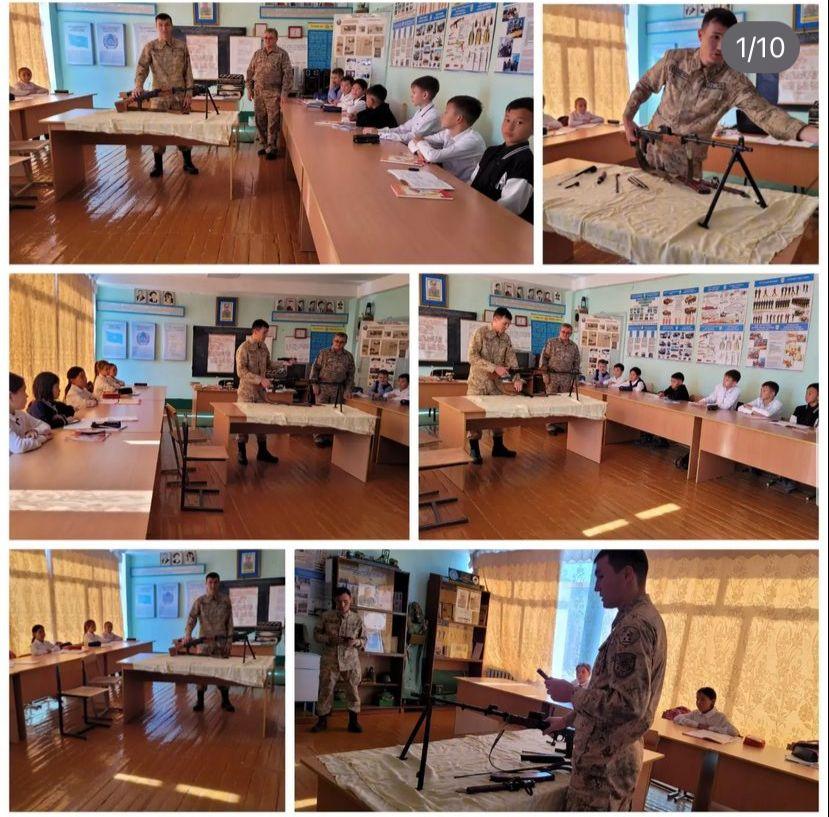 Қазақстан Республикасы Ұлттық қауіпсіздік комитеті Ауыл шекара қызметінің қызметкерлері АӘД пәнінің мұғалімі Алинов С.А бірге Абай облысы білім басқармасының Бородулиха ауданы білім бөлімінің "Коростели орта мектебі " КММ оқушыларына "Автоматты АК-74 бөлшектеу және жинақтау " түсіндірме сабағын өткізді.