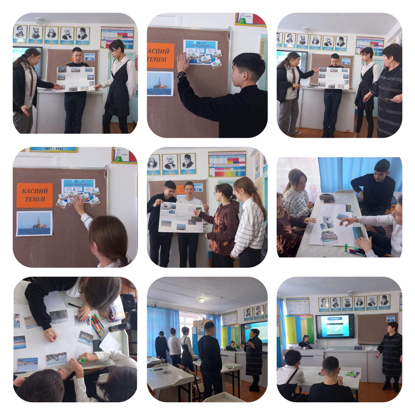 Қазақ тілі мен әдебиеті пәнінің мұғалімі Сулейменова С.Б. 10 ,,,Б"" сыныбында "Каспий теңізі" тақырыбында ашық сабақ өткізді.