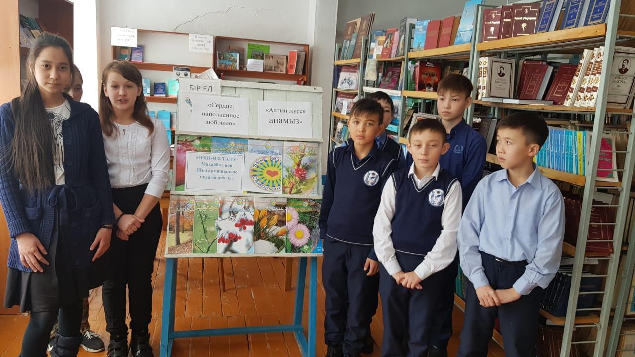 Библиотекарь школы Азельбаева М.О. и учитель самопознания, педагог-психолог Дуанова А.С. провели конкурс выразительного чтения текстов «Алтын жүрек анамыз» - «Сердце, наполненное любовью». Компетентное жюри в составе учителей начальных классов Кубаевой С.К., Косенко Т.В., Рыспаевой Ж.Б. определили победителей конкурса, которым будут вручены грамоты на линейке по случаю закрытия декады самопознания.