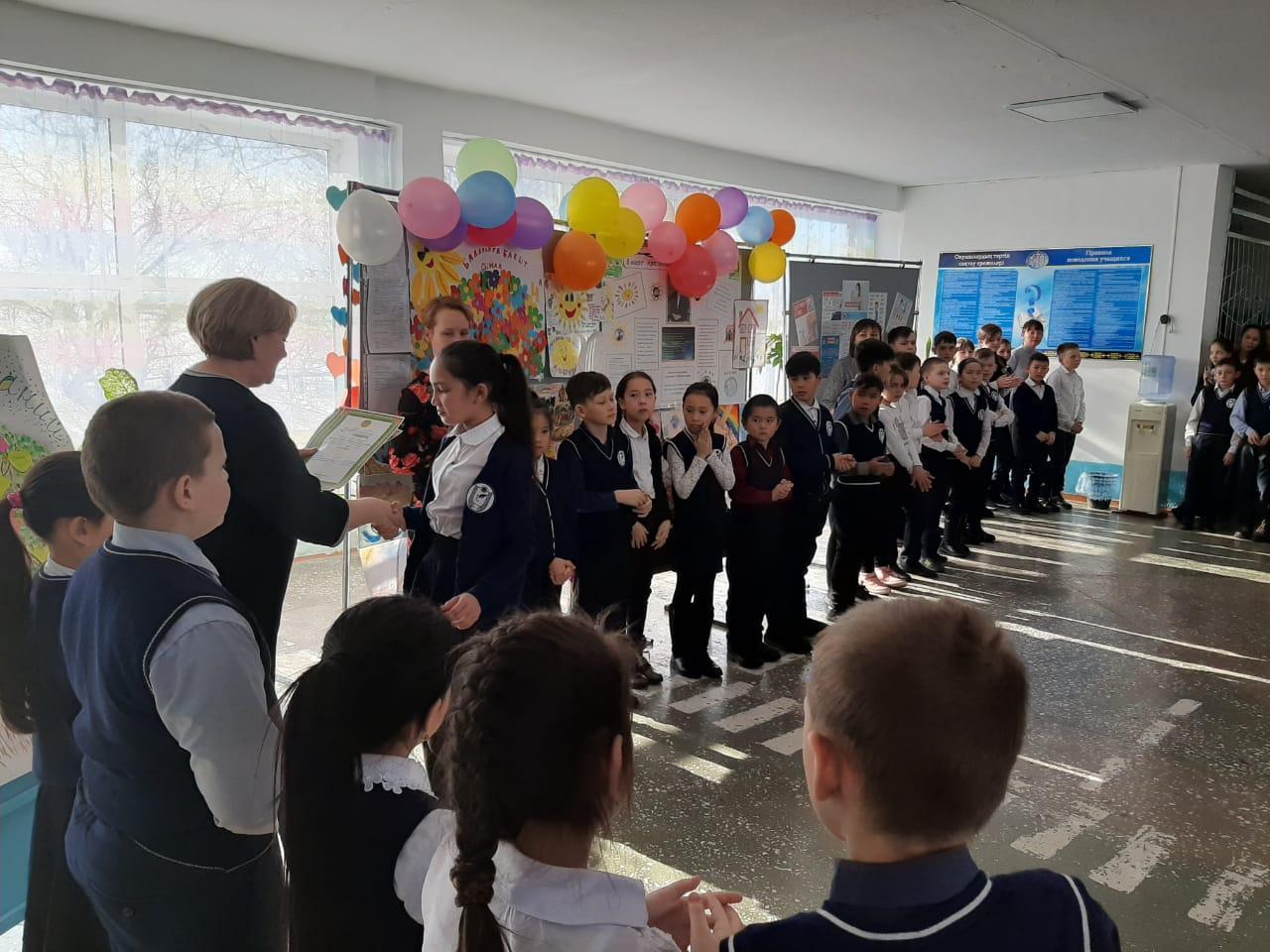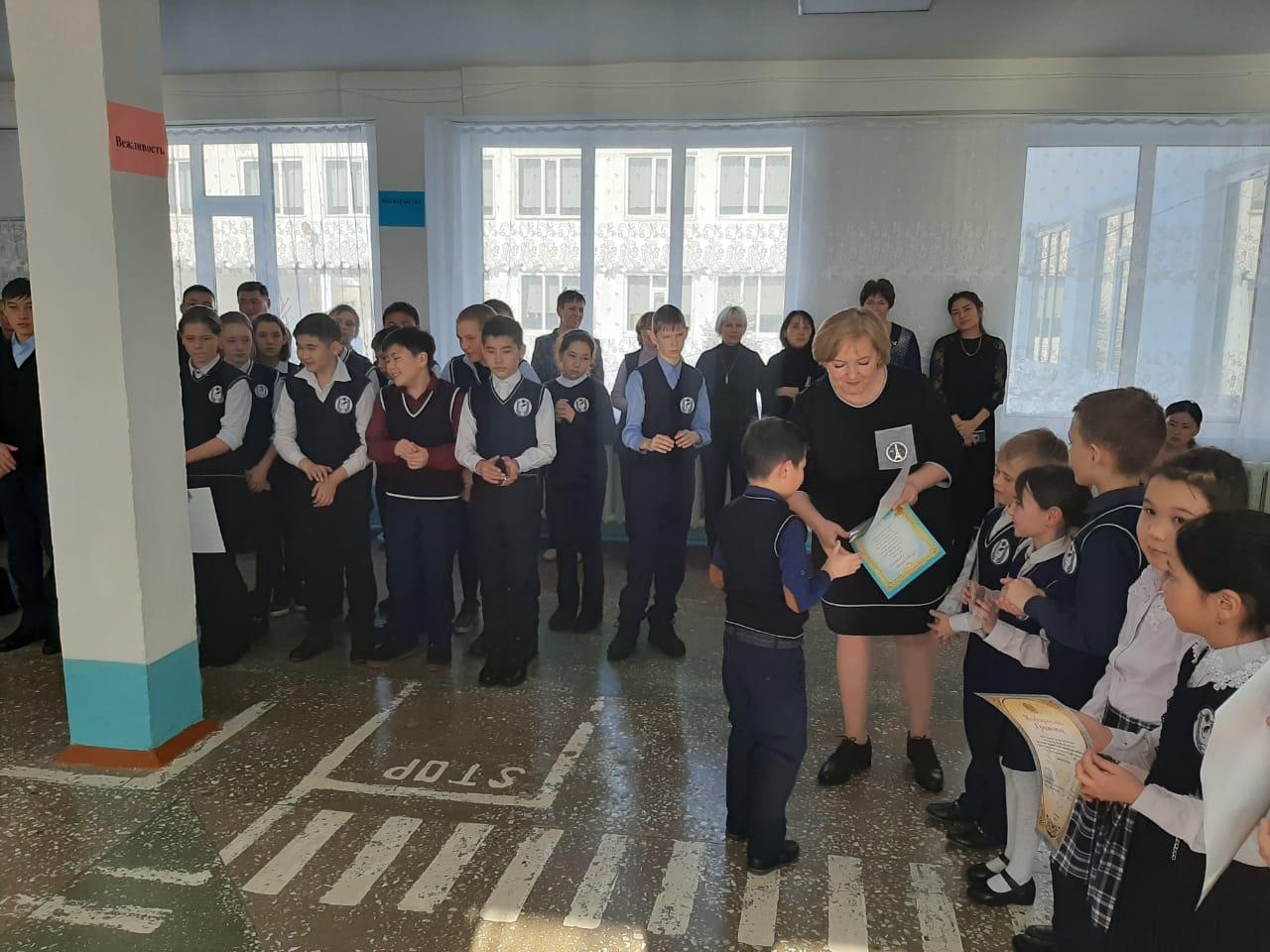 Было проведено награждение активных участников Декады благодарственными письмами и грамотами на общешкольной линейке, посвященной закрытию Декады. Ученики 2Б класса Рахамбекова Дарина, Бекбосун Мадина, Картавцев Владислав, Трофимов Игорь и ученики 4Б класса Алпысбаева Азалия, Джапашева Амина, Запасной Станислав с воодушевлением и праздничным настроением рассказывали стихи о предмете «Самопознание» и о Главной маме страны, желали ей здоровья и счастья.