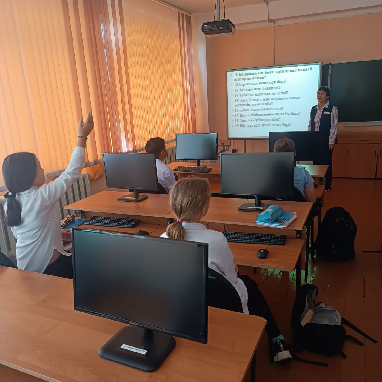 14 сентябрь 2023 0 1 2 3 4 5 "Мемлекеттік тіл-менің тілім" Коростели орта мектебінің қазақ тілі мен әдебиеті пәні мұғалімі Нуракенова К.К.Тіл мерекесіне байланысты,6 сынып оқушыларымен "Мемлекеттік тіл-менің тілім" атты сайыс сабақ өткізді.
