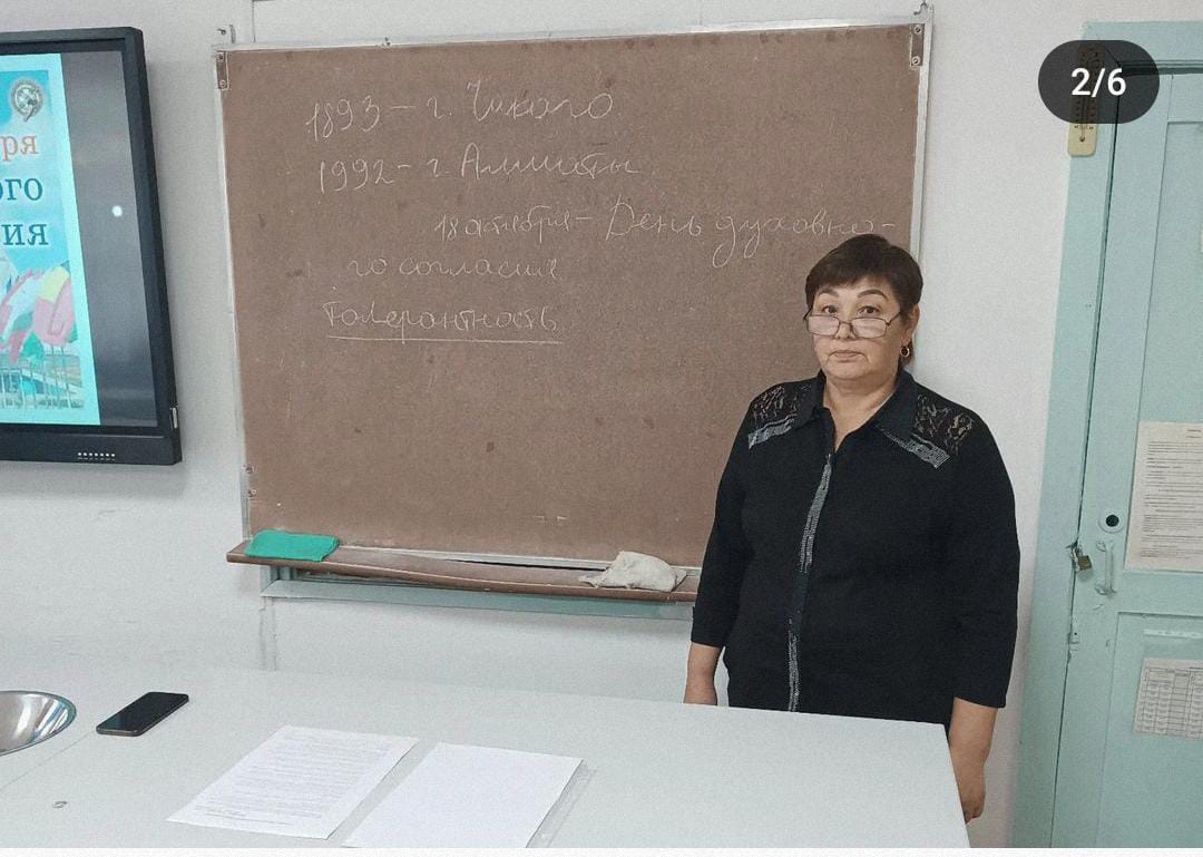 Бүгін «Коростели орта мектебінде» тарих пәнінің мұғалімі С.А.Қалиеваның 8,9,10 «А» және 10 «Б» сыныптарында сынып сағаты өтті. на тему: «18 қазан – Қазақстан Республикасының Рухани келісім күні».