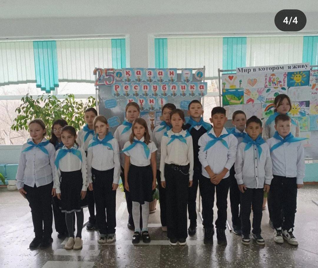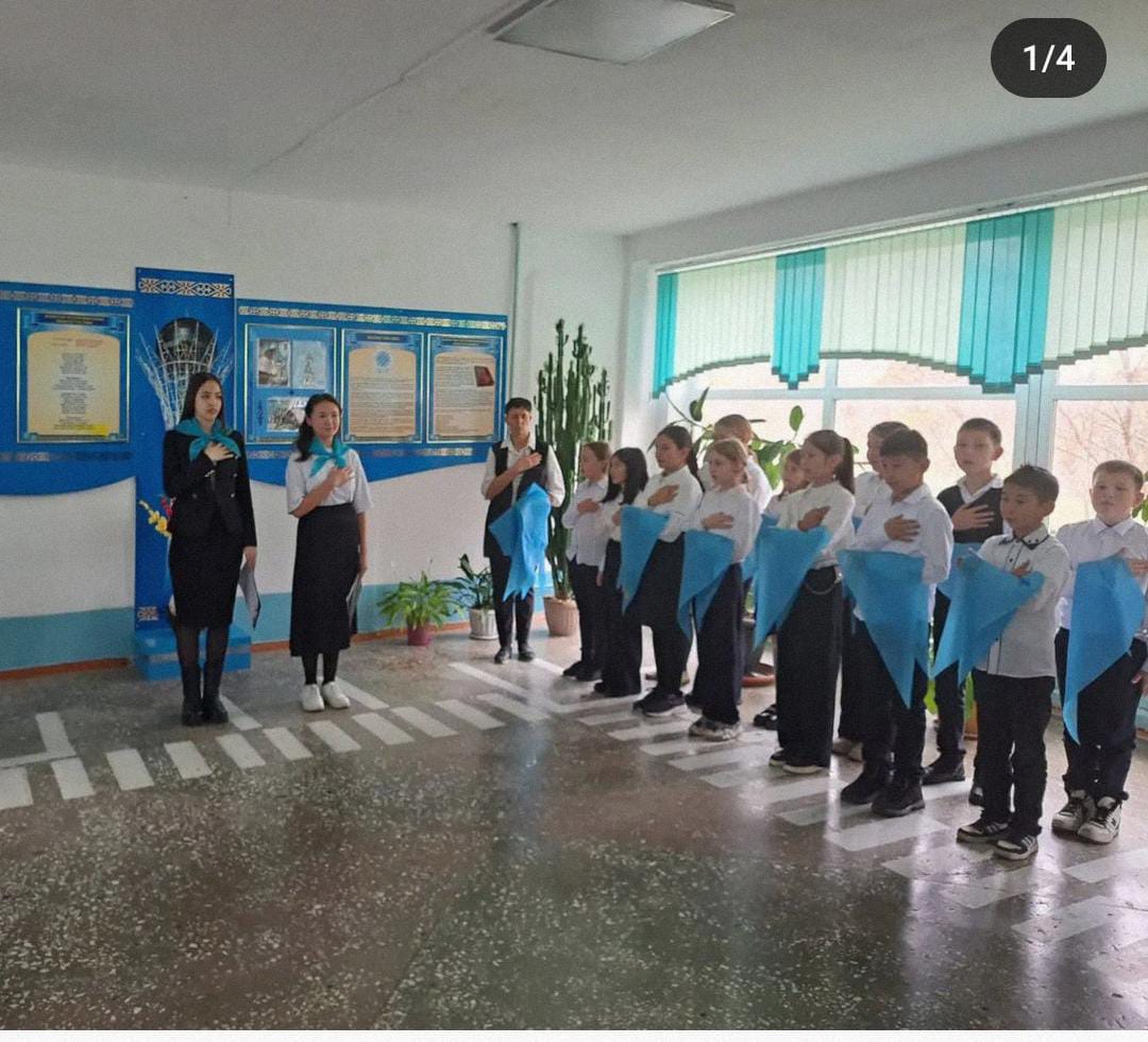 В КГУ "Коростелевская СШ" состоялась торжественная линейка ко Дню Республики Казахстан, учащиеся 5 класса были приняты в ряды единой детско-юношеской организации «Жас Улан».
