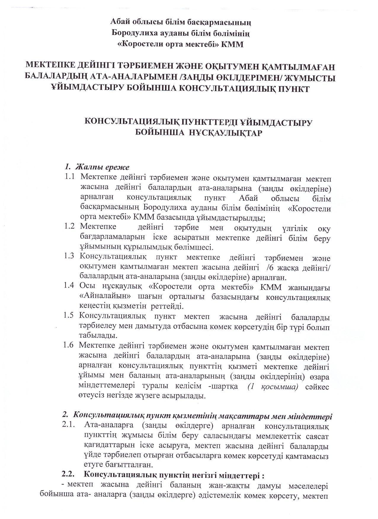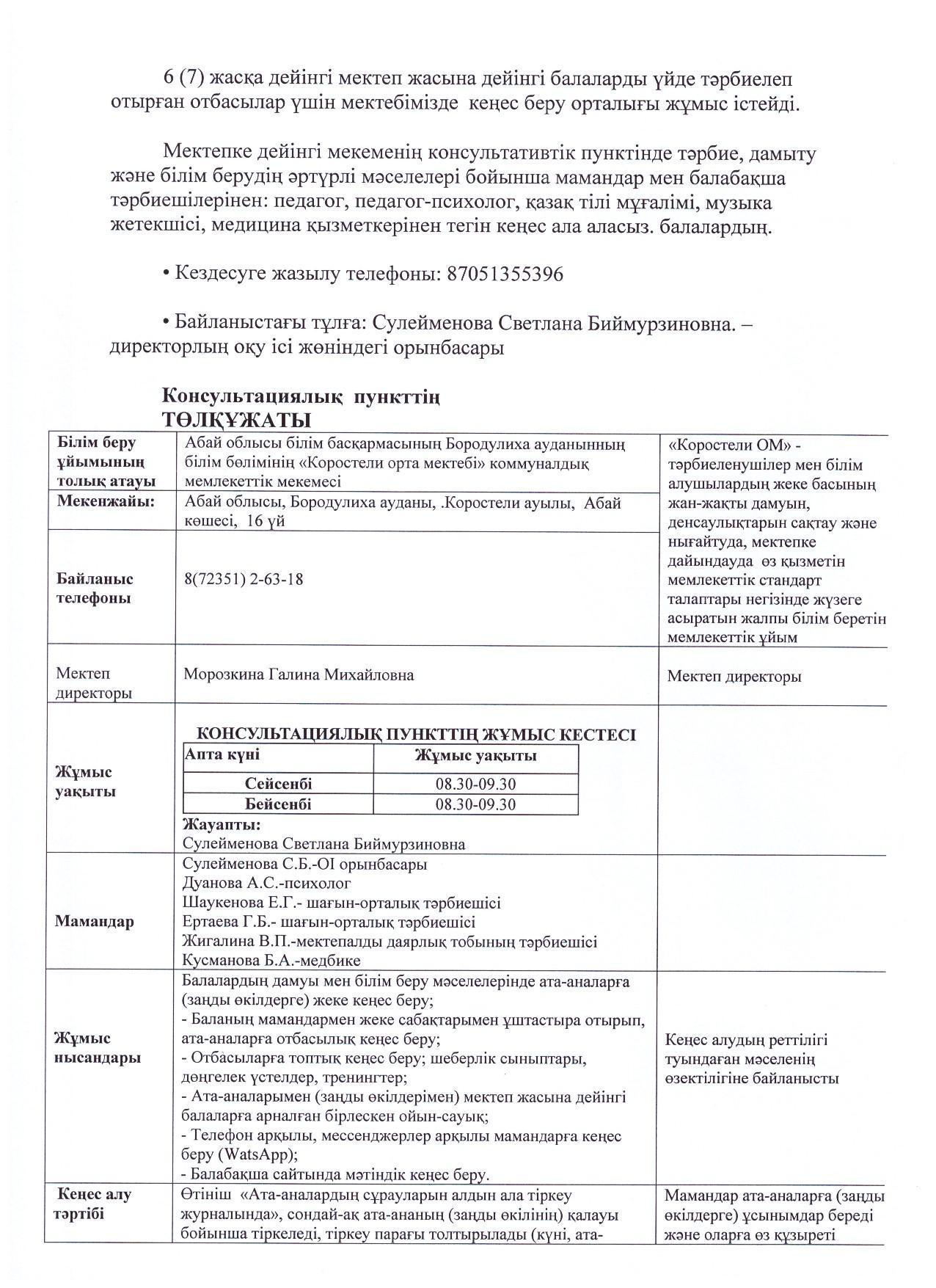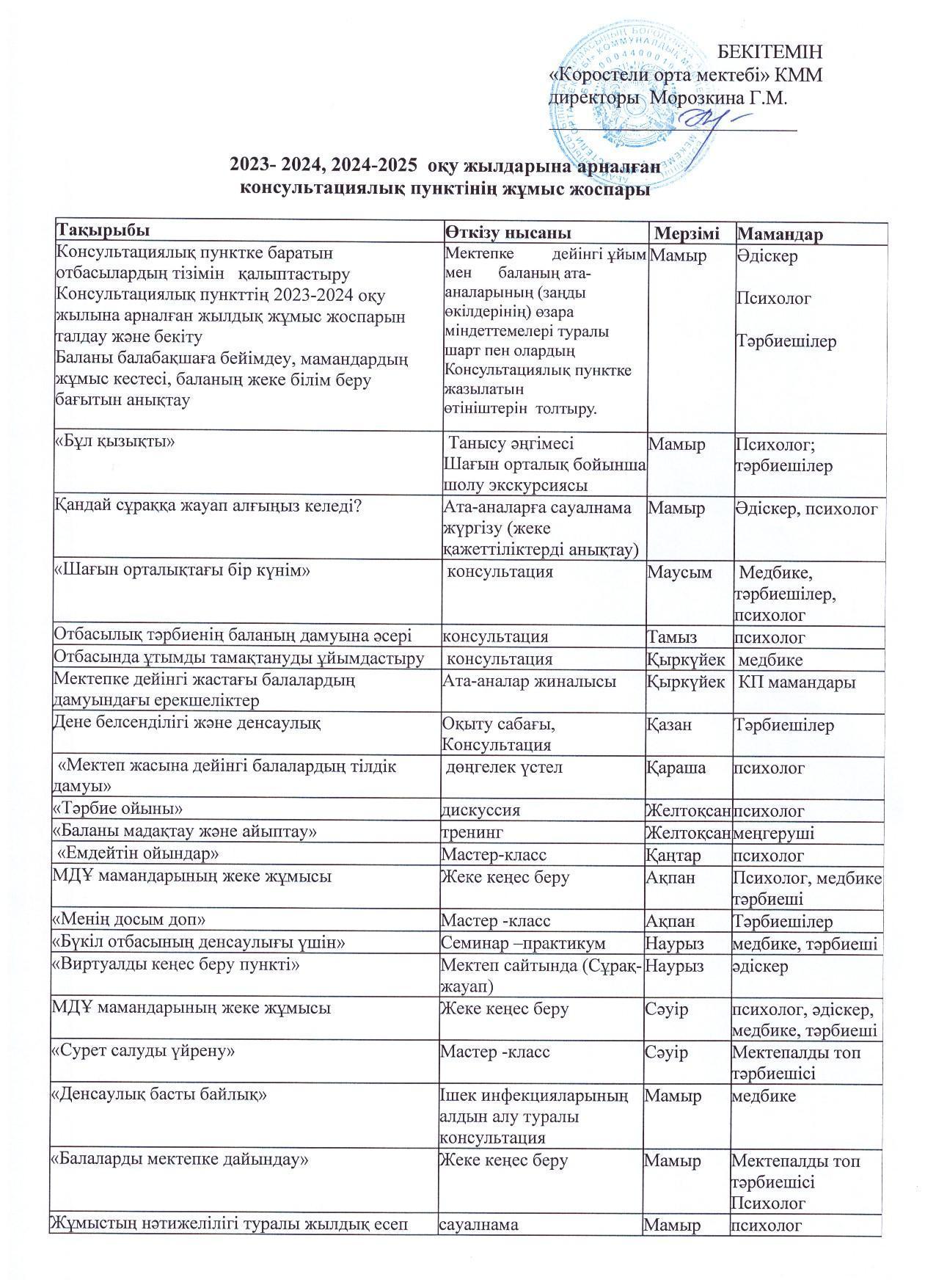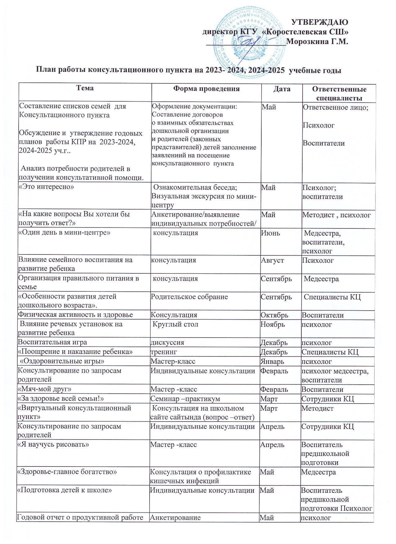 План работы консультационного пункта » КГУ «Коростелевская средняя школа»