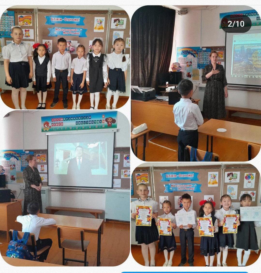 Единый классный час начался в 9.00 часов с исполнения Гимна Республики Казахстан. Учащиеся прослушали выступление Министра просвещения РК с приветственным словом к обучающимся, показом видеоролика о достижениях казахстанских детей.
