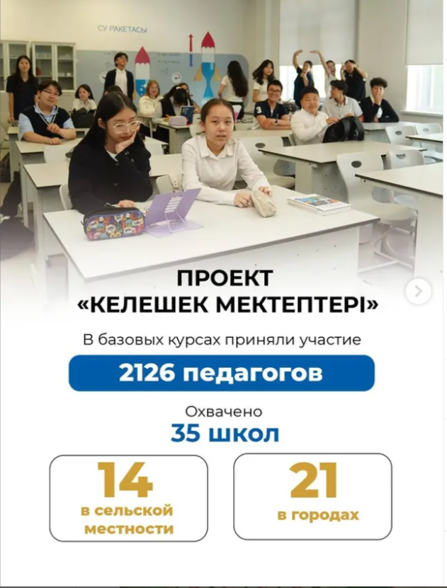 🔖 Национальный центр повышения квалификации «Өрлеу» Министерства просвещения РК проводит системную работу по развитию профессиональных компетенций педагогов в рамках национального проекта «Келешек мектептері».
