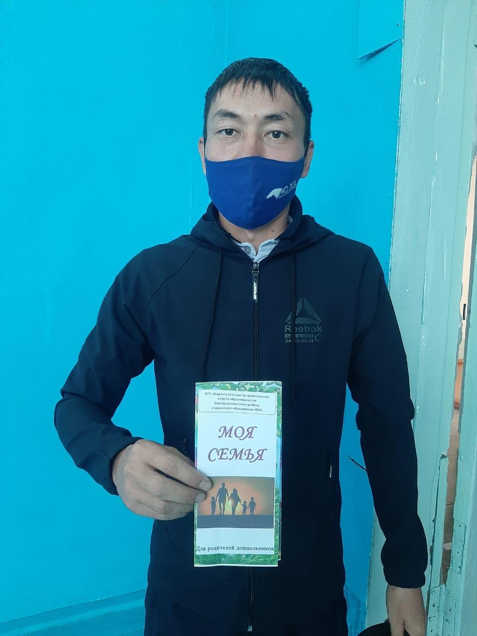 В рамках Концептуальных основ по проведению праздничных мероприятий,посвящённых 30-летию Независимости РК среди родителей предшкольного класса были распространены буклеты "Моя Семья", посвящённые ко Дню Семьи в РК от детско-юношеской организации "Жас Ұлан". Руководитель: Саякина Алия Аманжоловна.