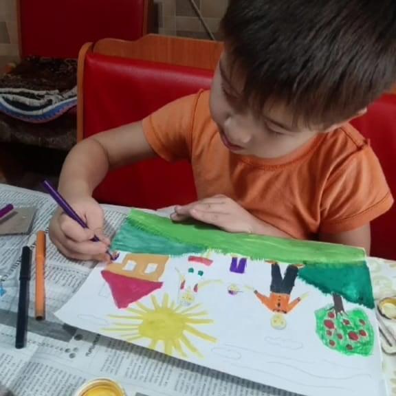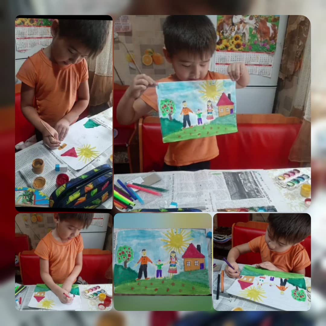 В рамках правового месячника, посвящённого Всемирному дню ребёнка были проведены конкурс совместных рисунков среди воспитанников мини-центра "Айналайын" на тему "Мама, папа и я"