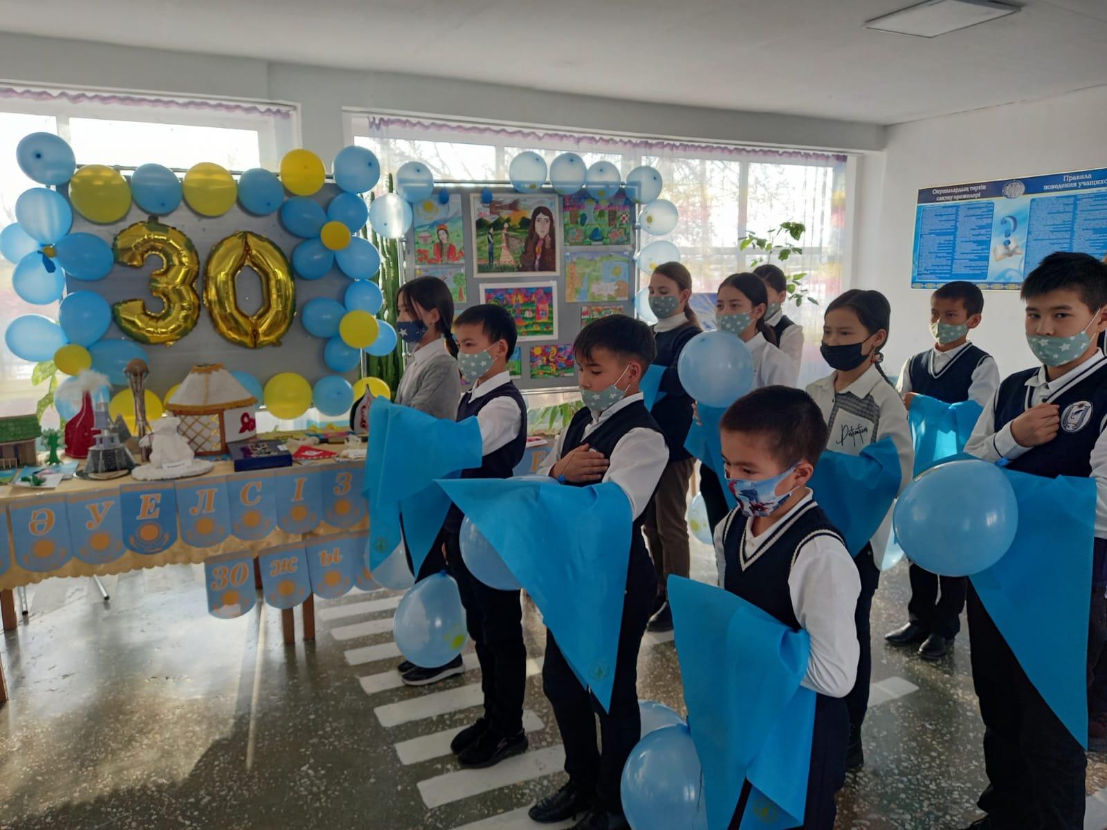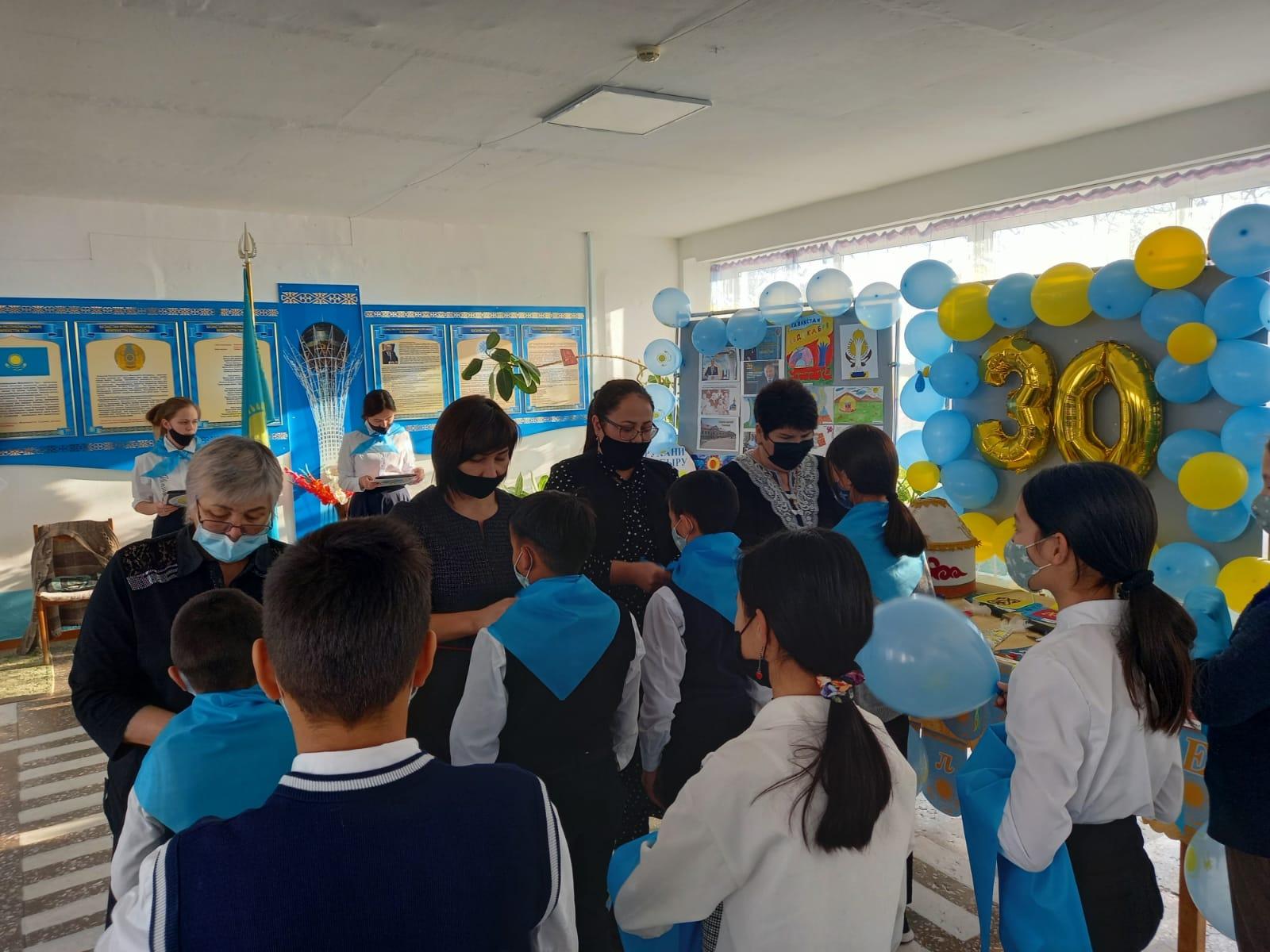 Ребята произнесли текст торжественной клятвы, прочитали стихи о достижениях Независимости, одели галстуки небесно-голубого цвета и поклялись любить и беречь Родину. Надо отметить, что галстуки для данного мероприятия приобрел глава КХ «Табысты Несие» Сулейменов А.С.