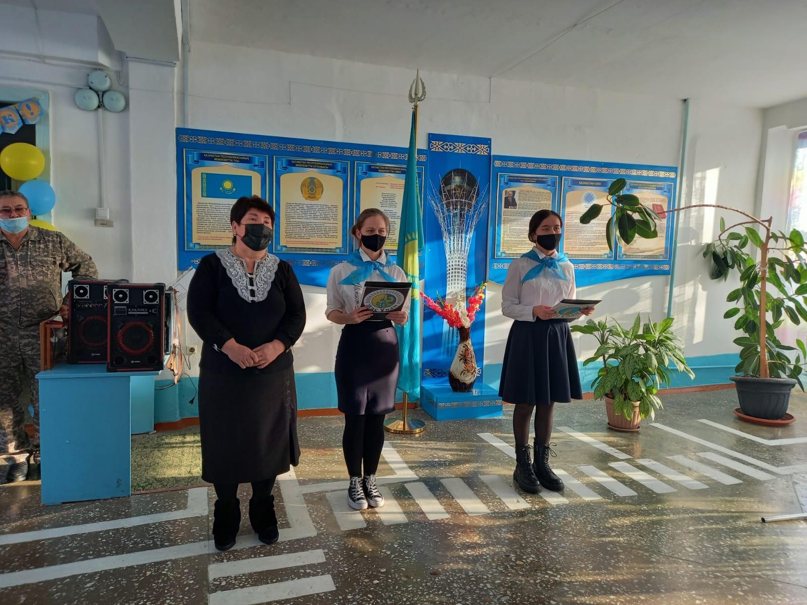Заместители директора школы по воспитательной работе Нусупова Айжан Ильясовна, Сулейменова Светлана Биймурзиновна, ветеран педагогического труда, учитель истории Калиева Сания Ашимова, классный руководитель Шеянкова Юлия Викторовна поздравили пятиклассников с вступлением в ряды «Жас Ұлан».