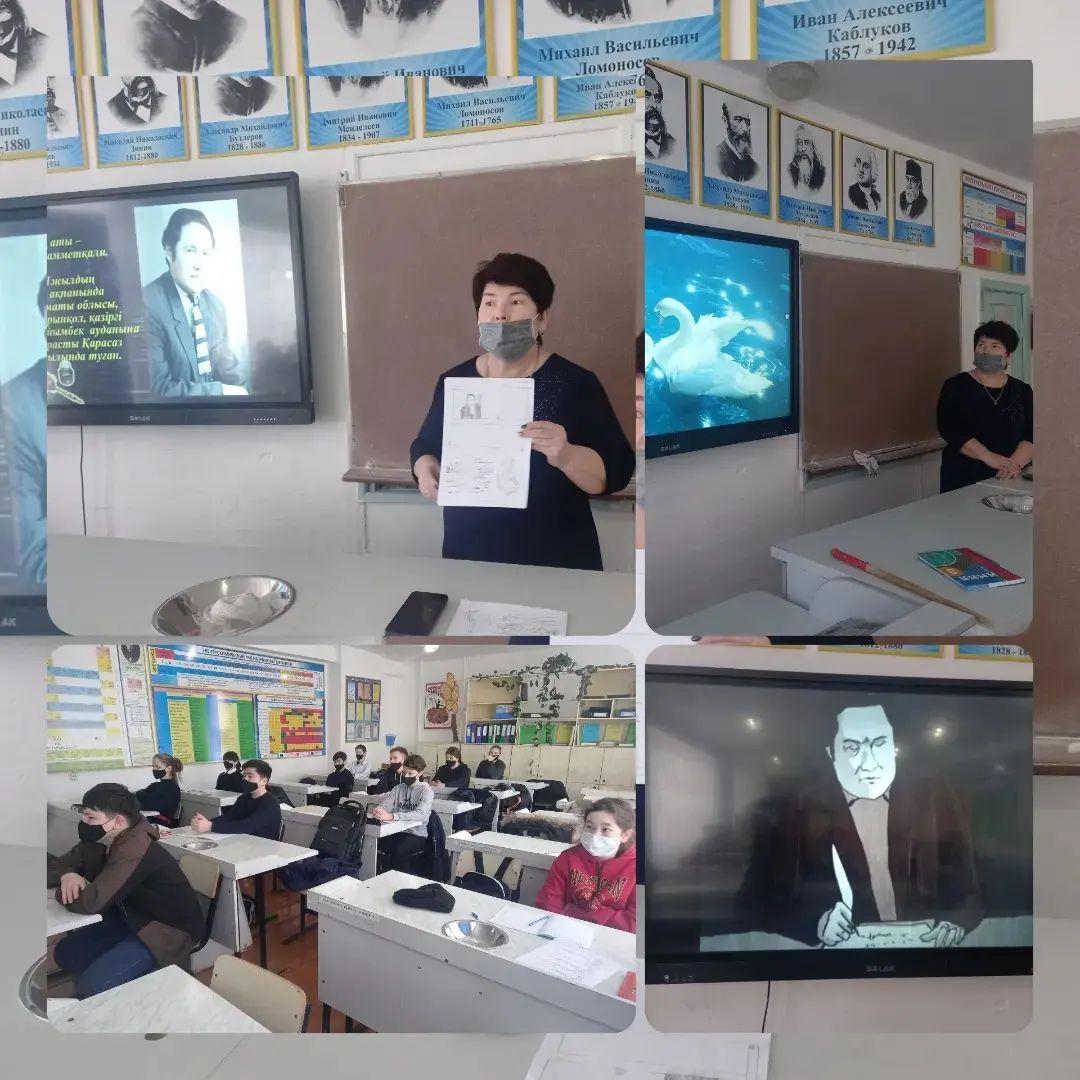в КГУ«Коростелевская средняя школа» отдела образования по Бородулихинскому району управления образования ВКО был проведен урок, посвященный жизни и творчеству известного казахского писателя и поэта Мукагали Макатаева.