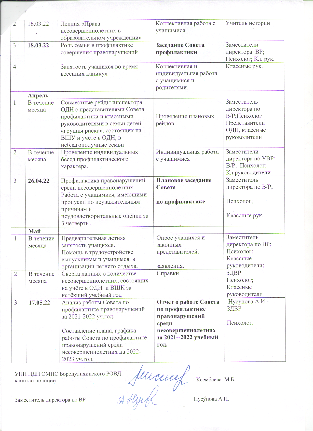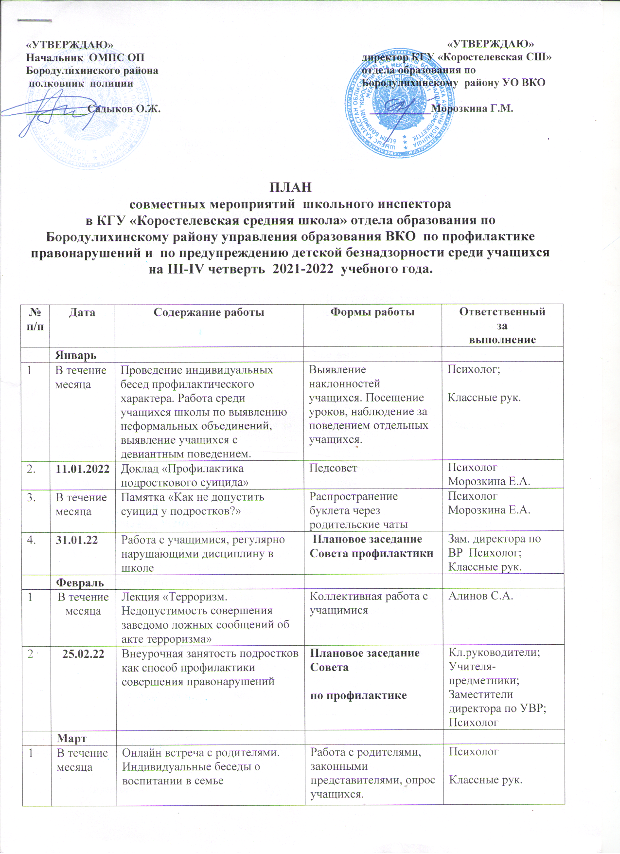 План совместных мероприятий школьного инспектора в КГУ "Коростелевская средняя школа" отдела образования по Бородулихинскому району управления образования ВКО » КГУ «Коростелевская средняя школа»