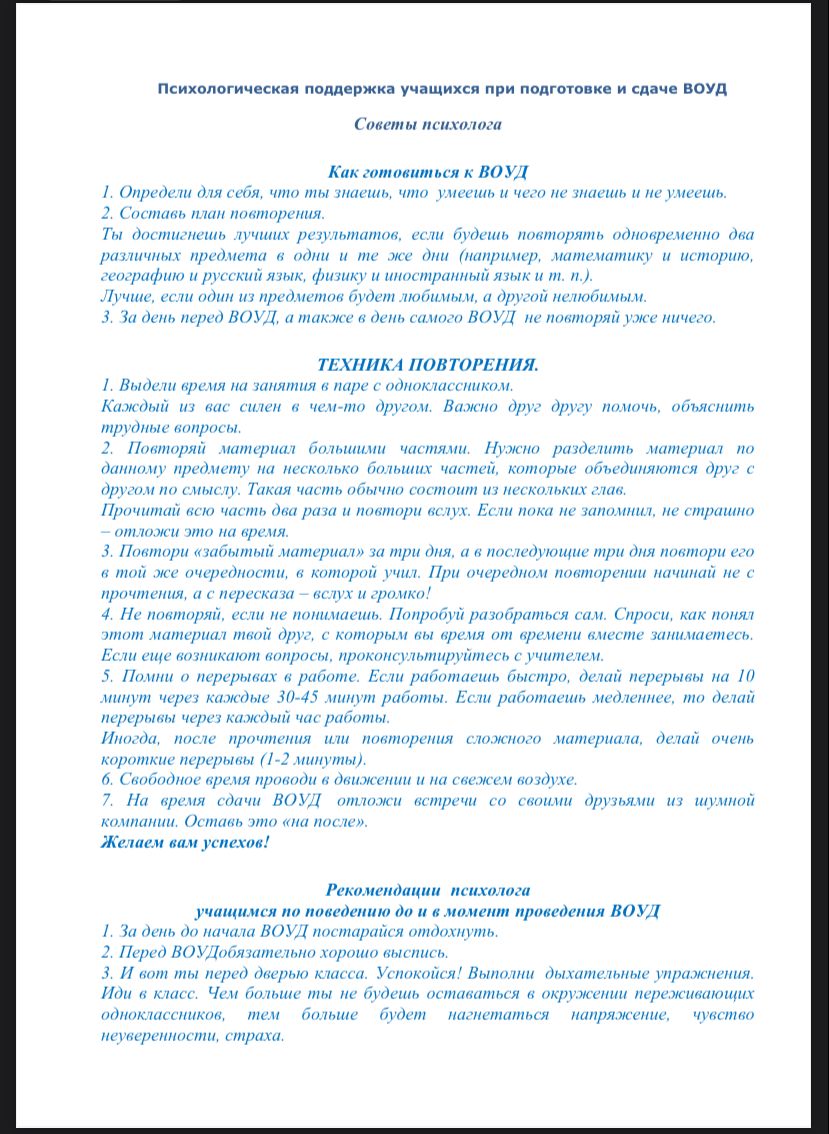 Психологическая поддержка учащихся при подготовке и сдаче МОДО