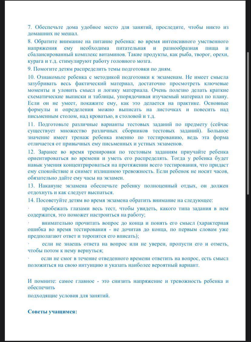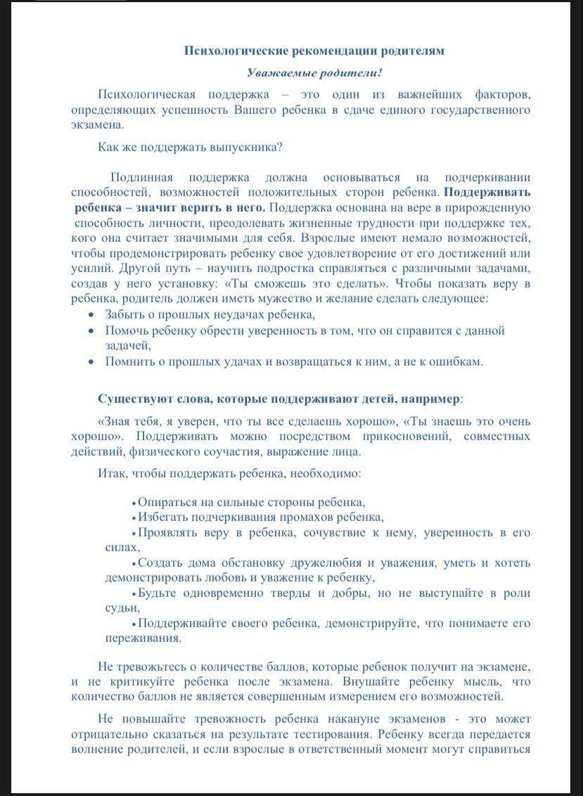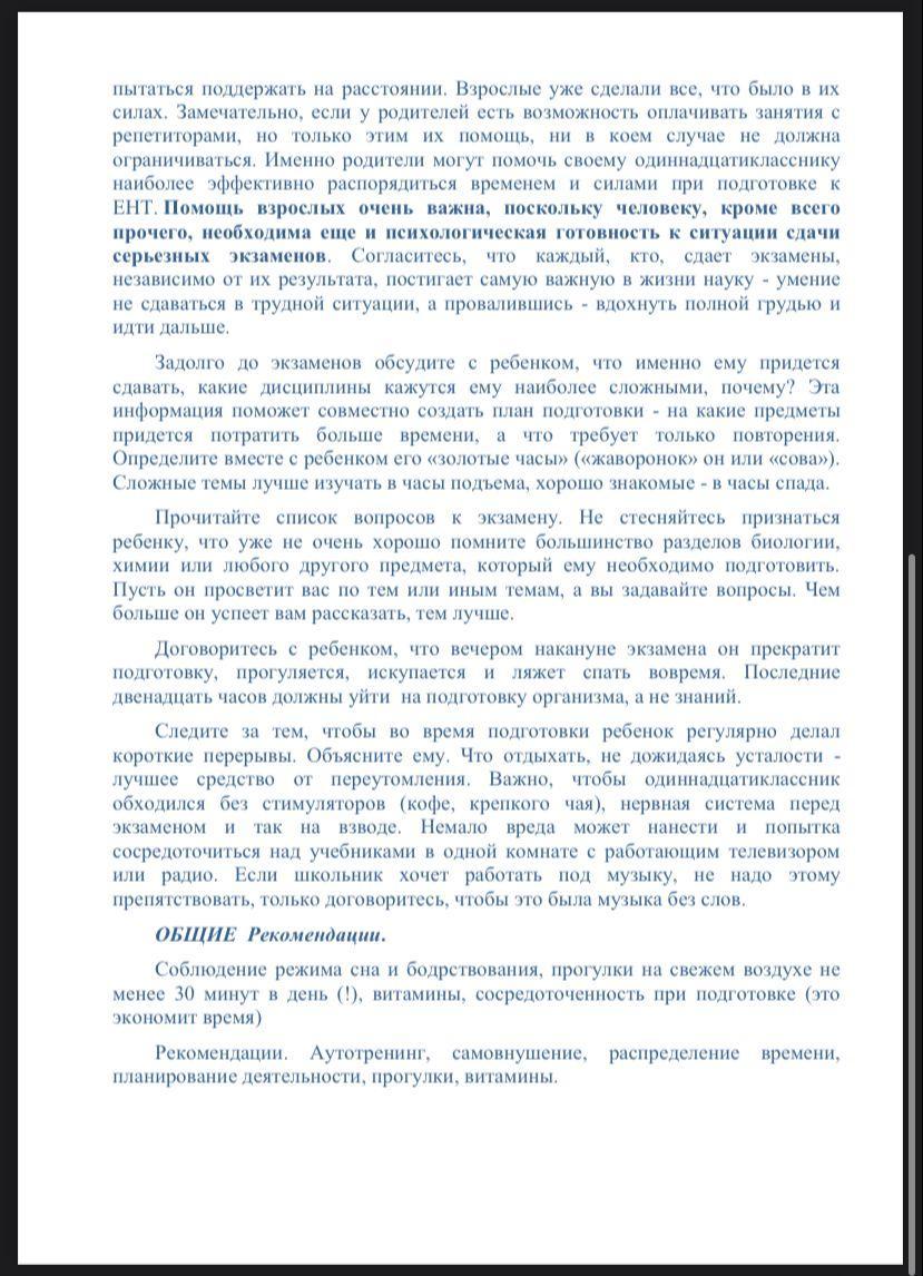 Психологическая подготовка к ЕНТ, рекомендации родителям