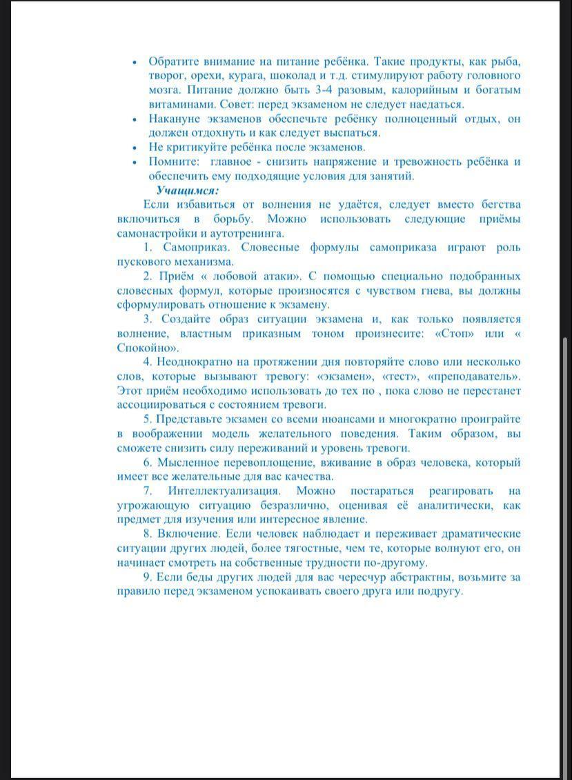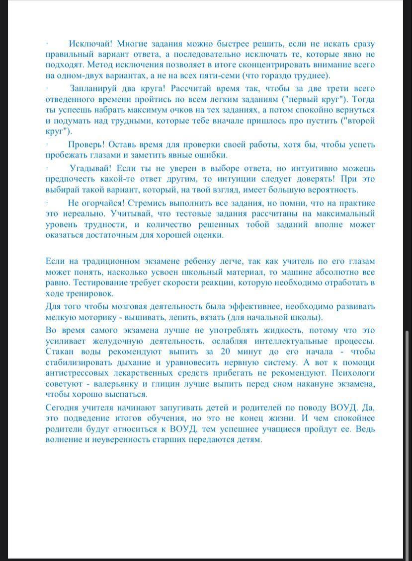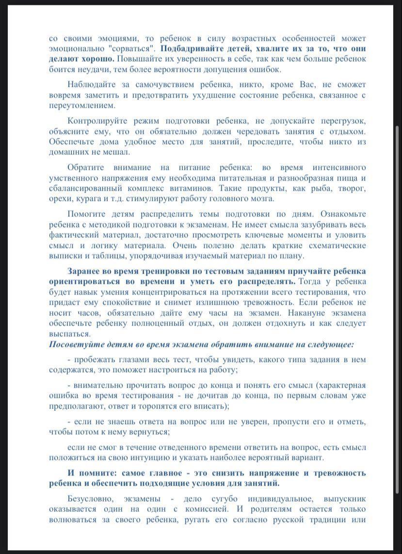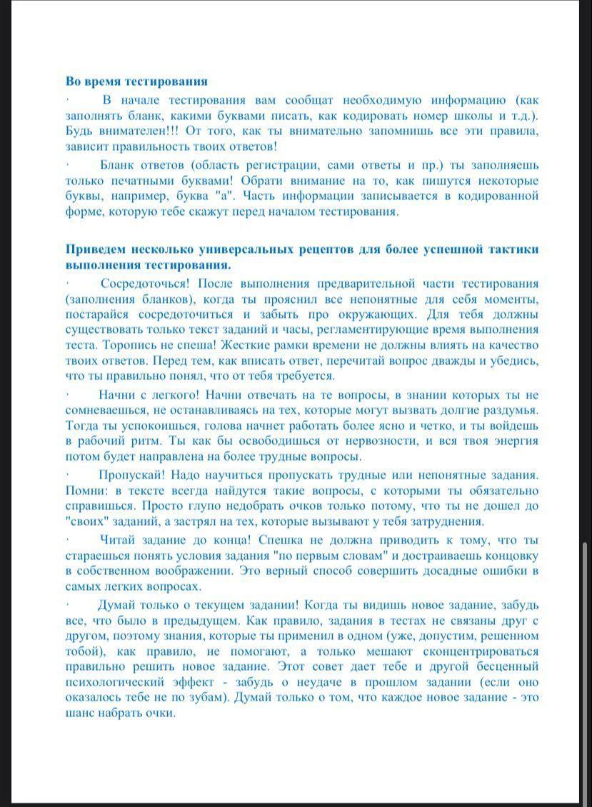 Психологическая подготовка к ЕНТ, рекомендации родителям