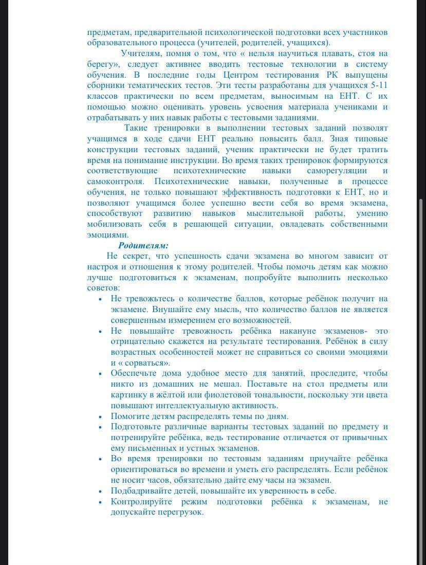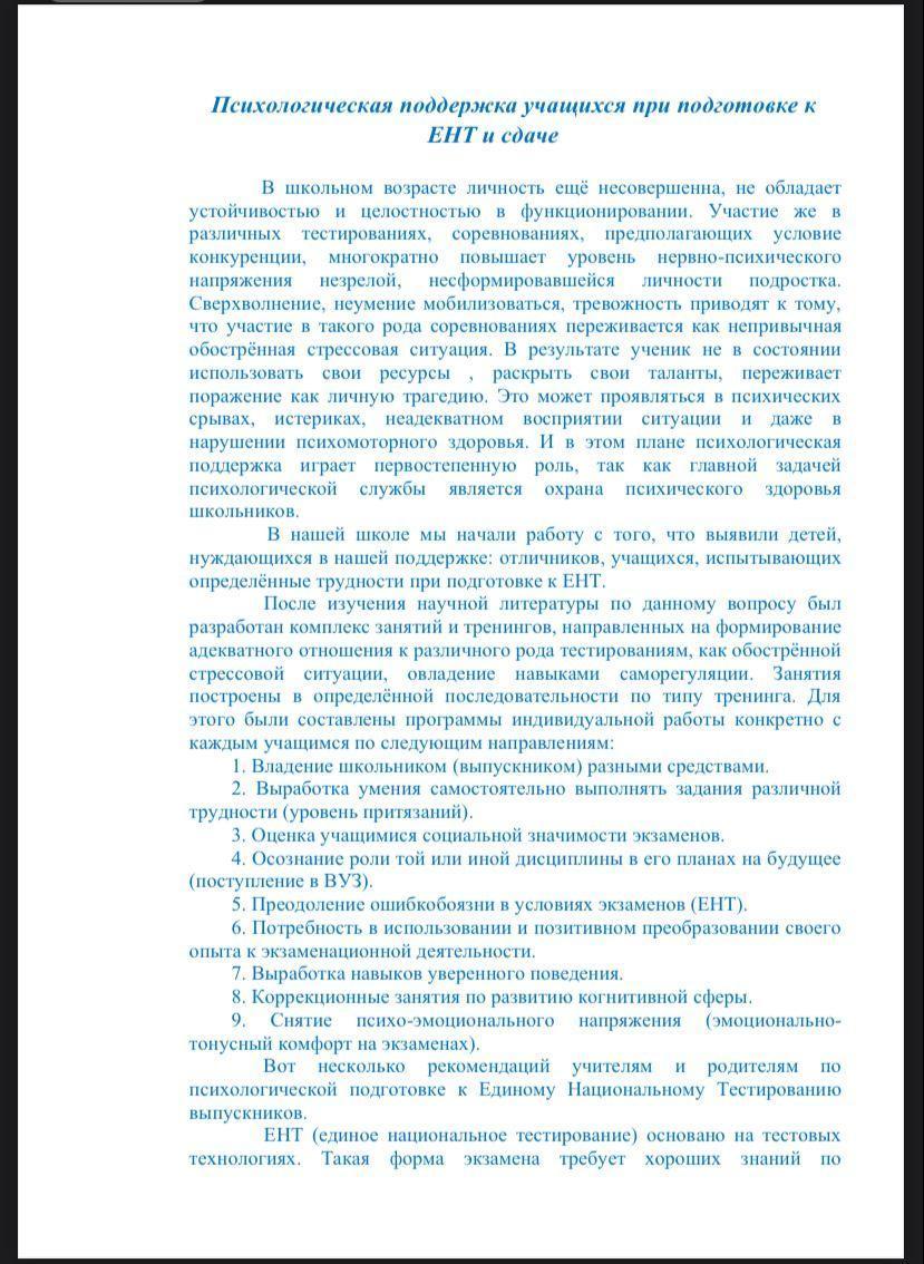 Психологическая подготовка к ЕНТ учащихся и родителей