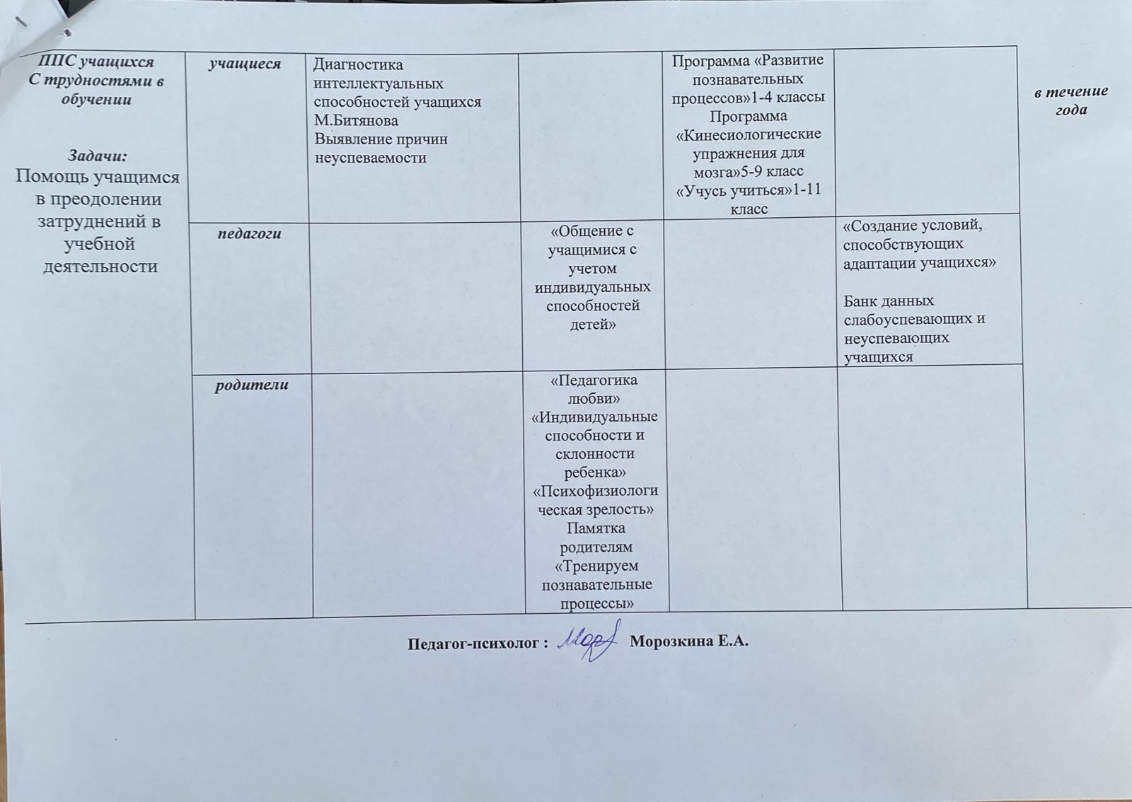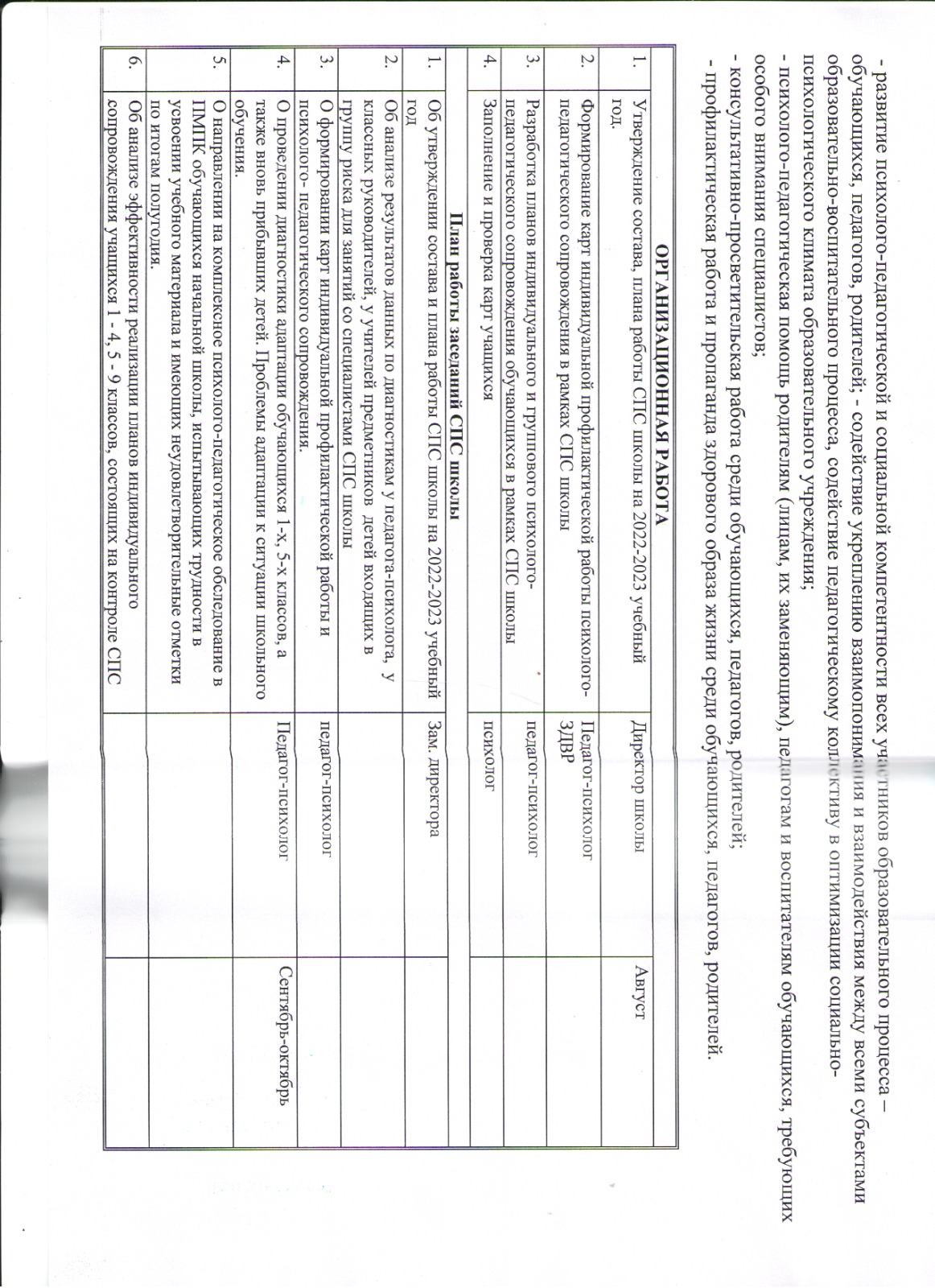 Перспективный план работы социально-психологической службы КГУ «Коростелевская средняя школа» отдела образования Бородулихинского района управления образования области Абай на 2022-2023 учебный год » КГУ «Коростелевская средняя школа»