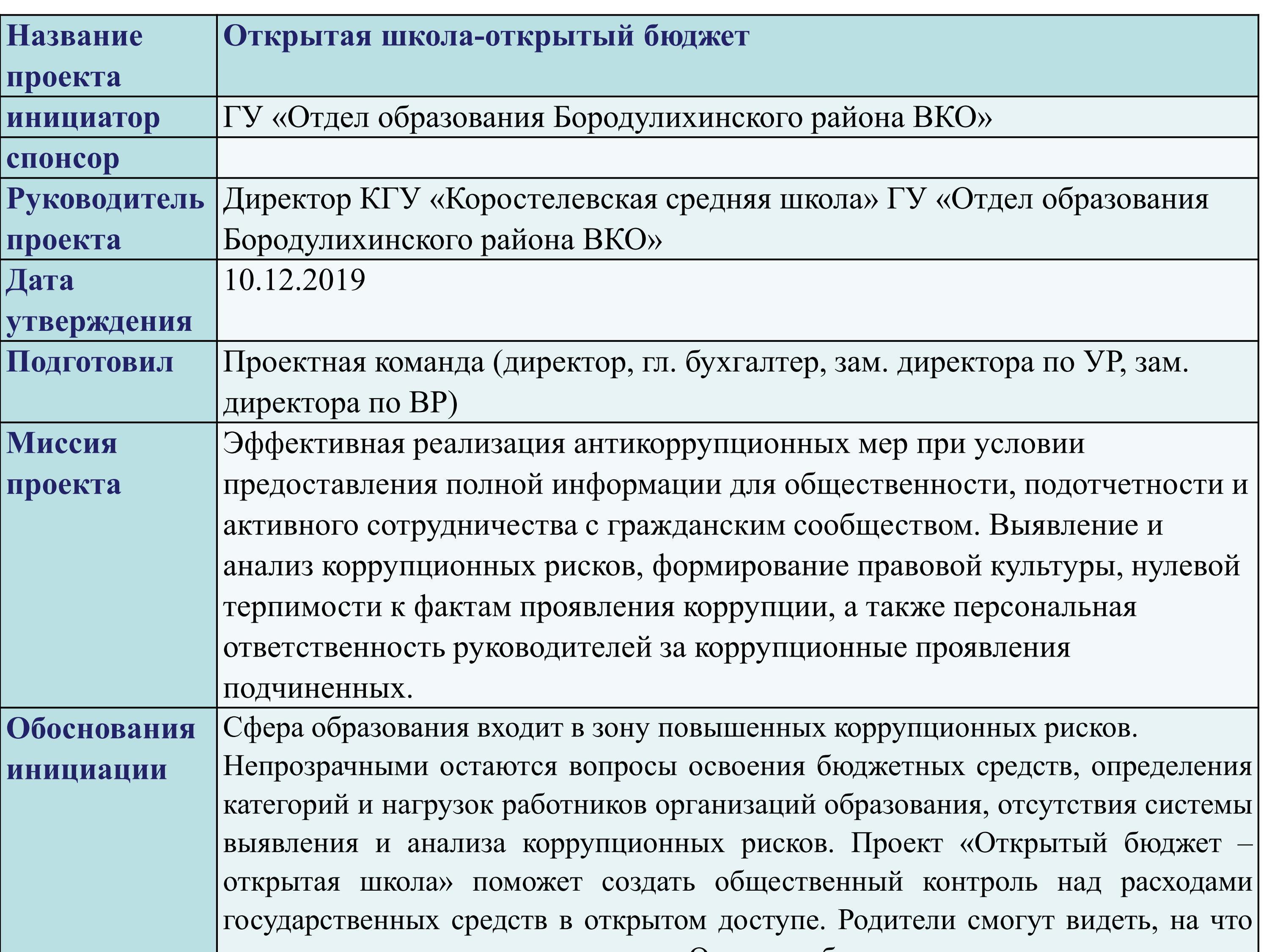 Открытая школа-открытый бюджет » КГУ «Коростелевская средняя школа»