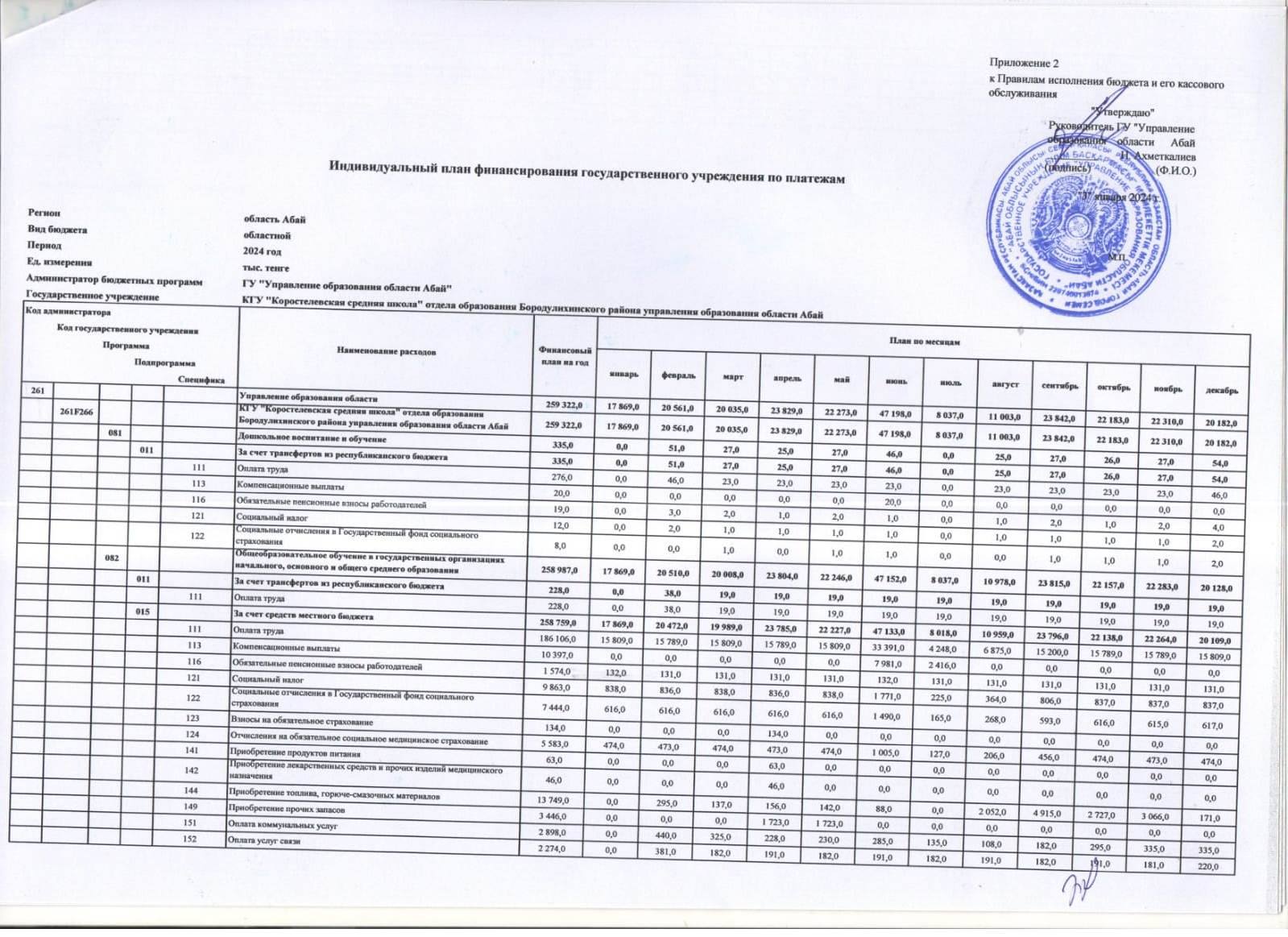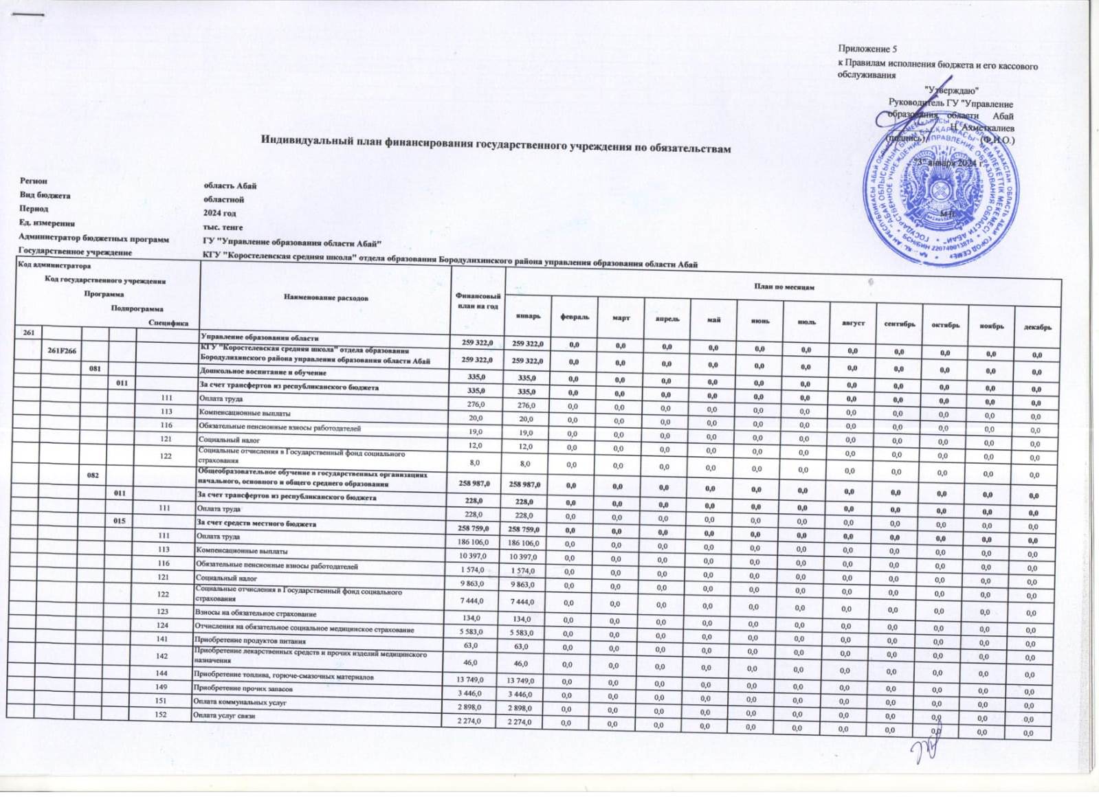 Индивидуальный план финансирования на 2024 год » КГУ «Коростелевская средняя школа»