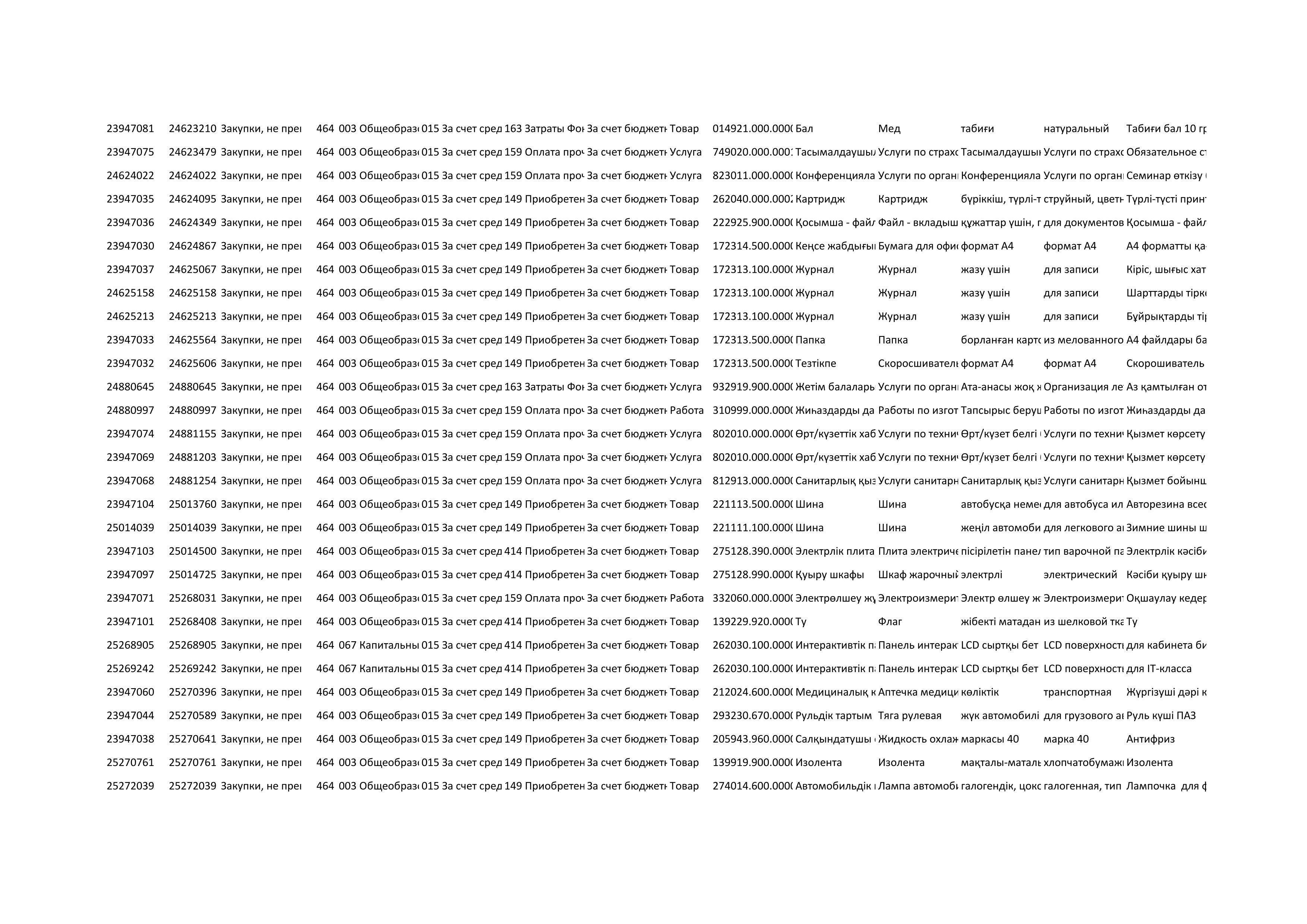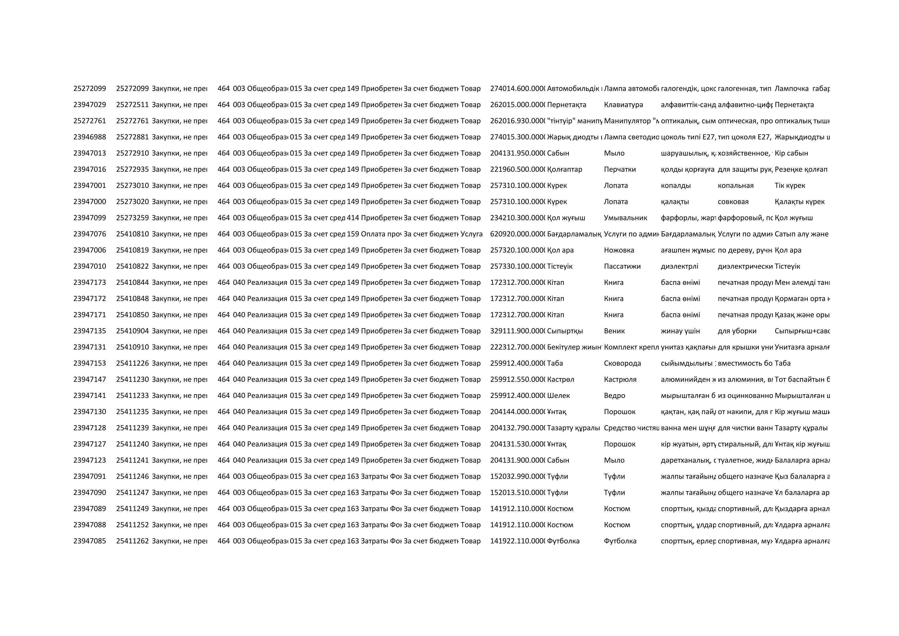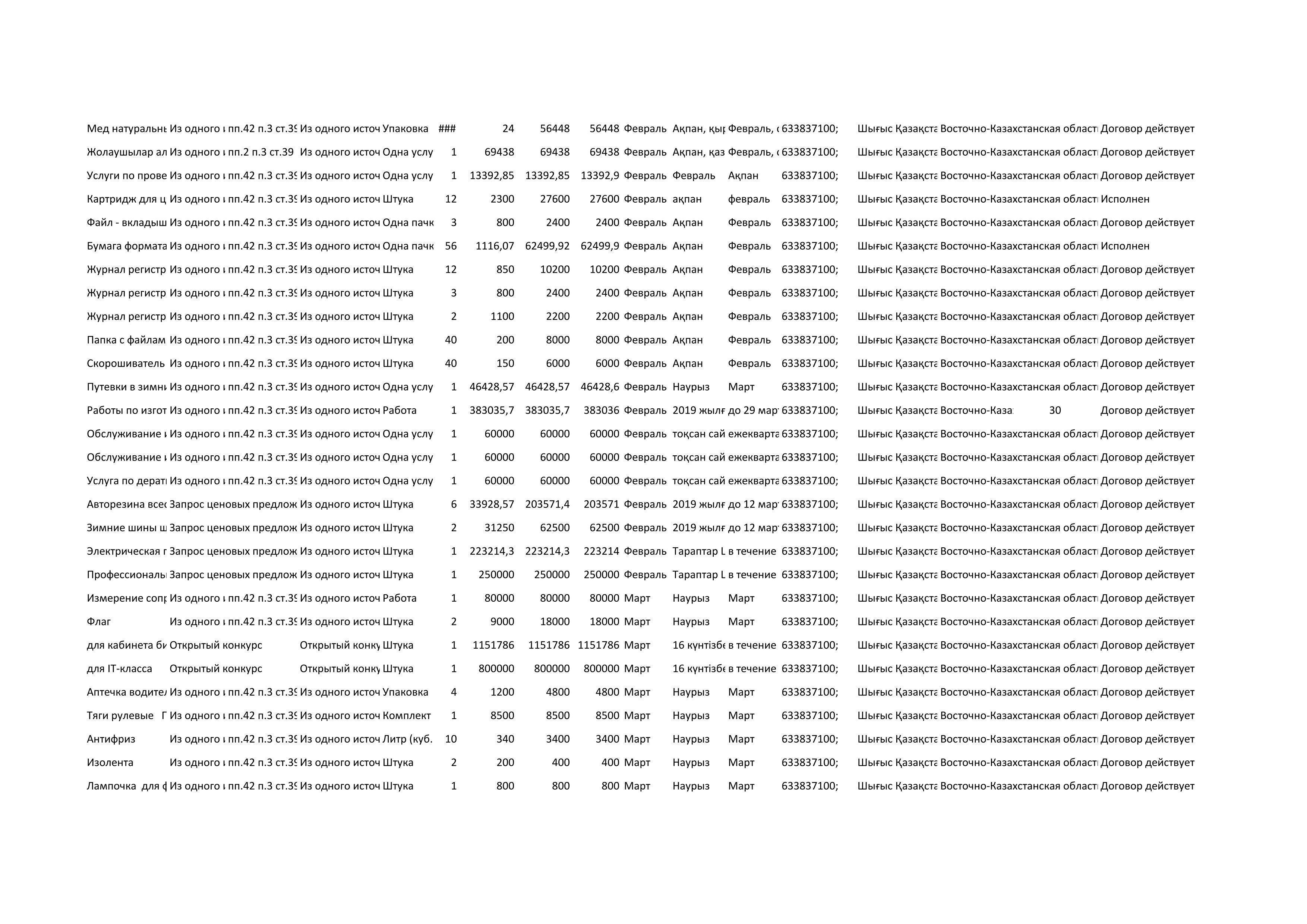 План государственных закупок на 2019 год » КГУ «Коростелевская средняя школа»