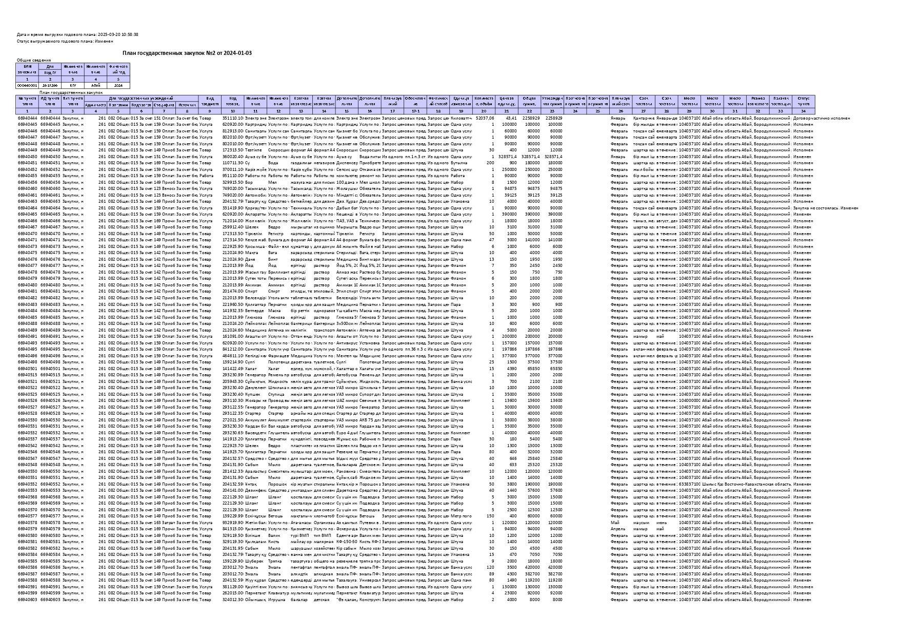 План государственных закупок №2 от 2024-01-03 » КГУ «Коростелевская средняя школа»