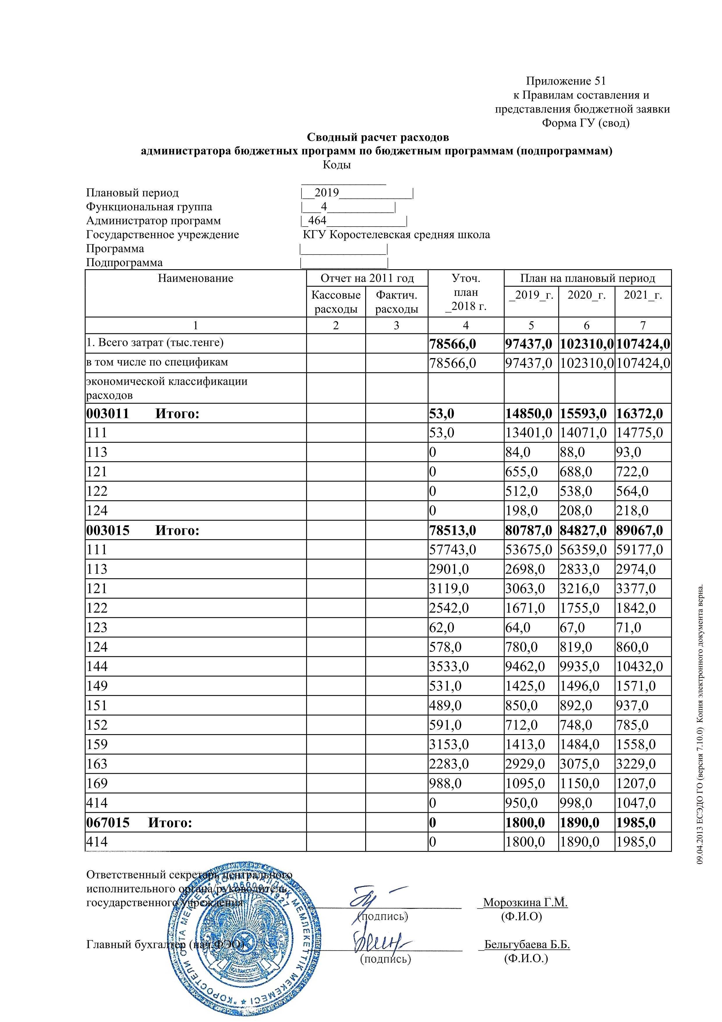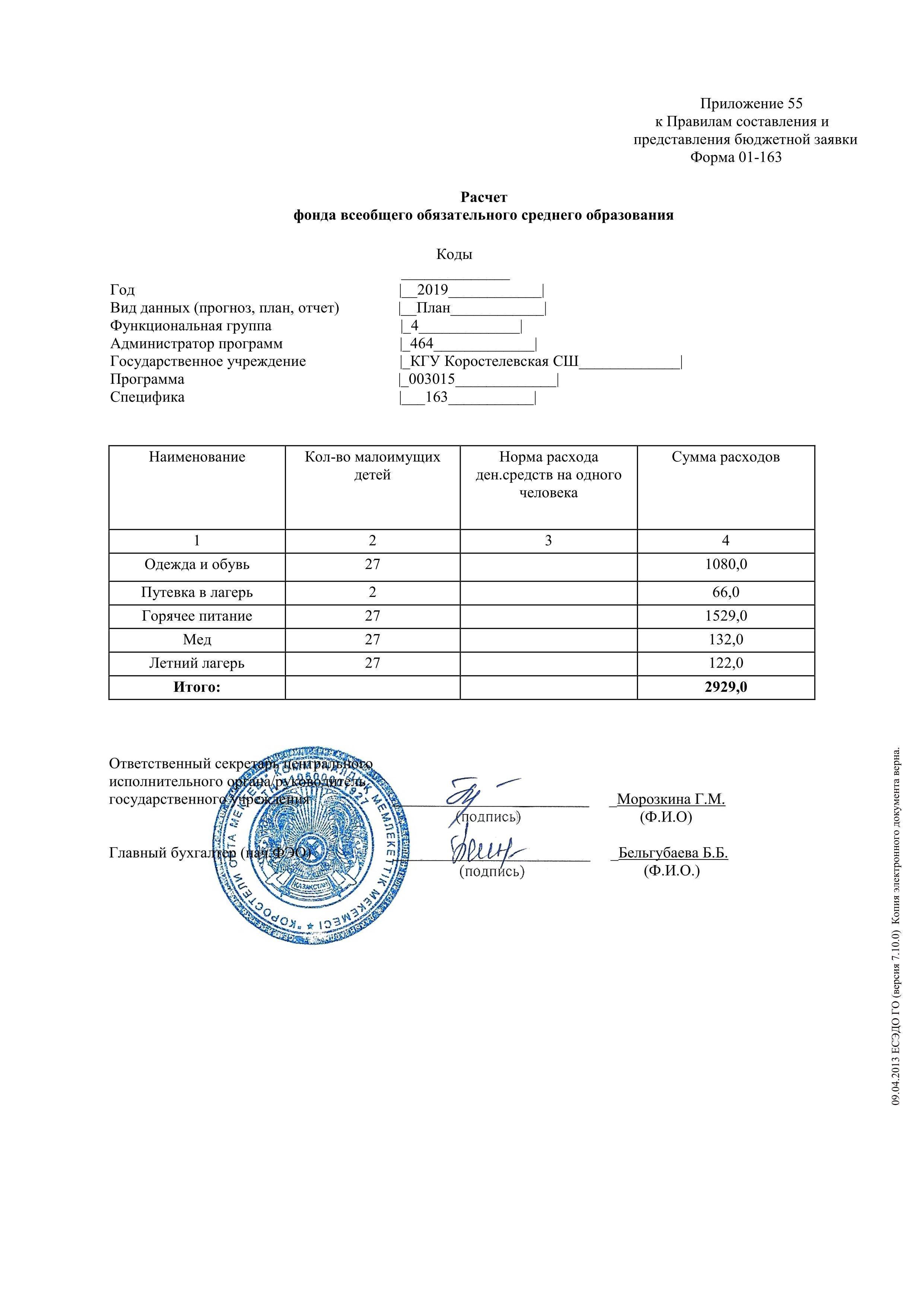 Утвержденный бюджет на 2019 год » КГУ «Коростелевская средняя школа»
