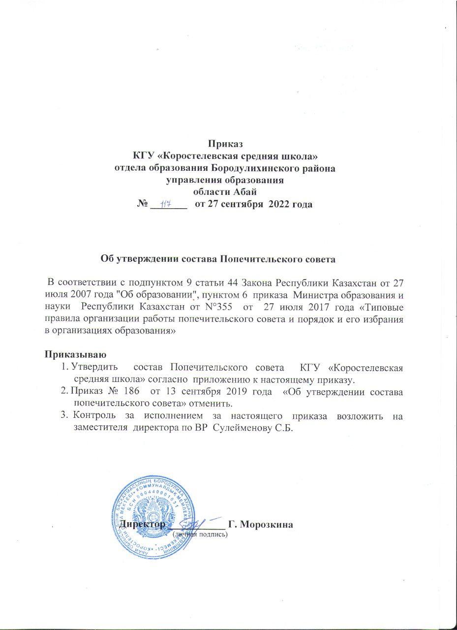 28 сентябрь 2022 0 1 2 3 4 5 Приказ об утверждении состава Попечительского совета на 2022-2023 учебный год