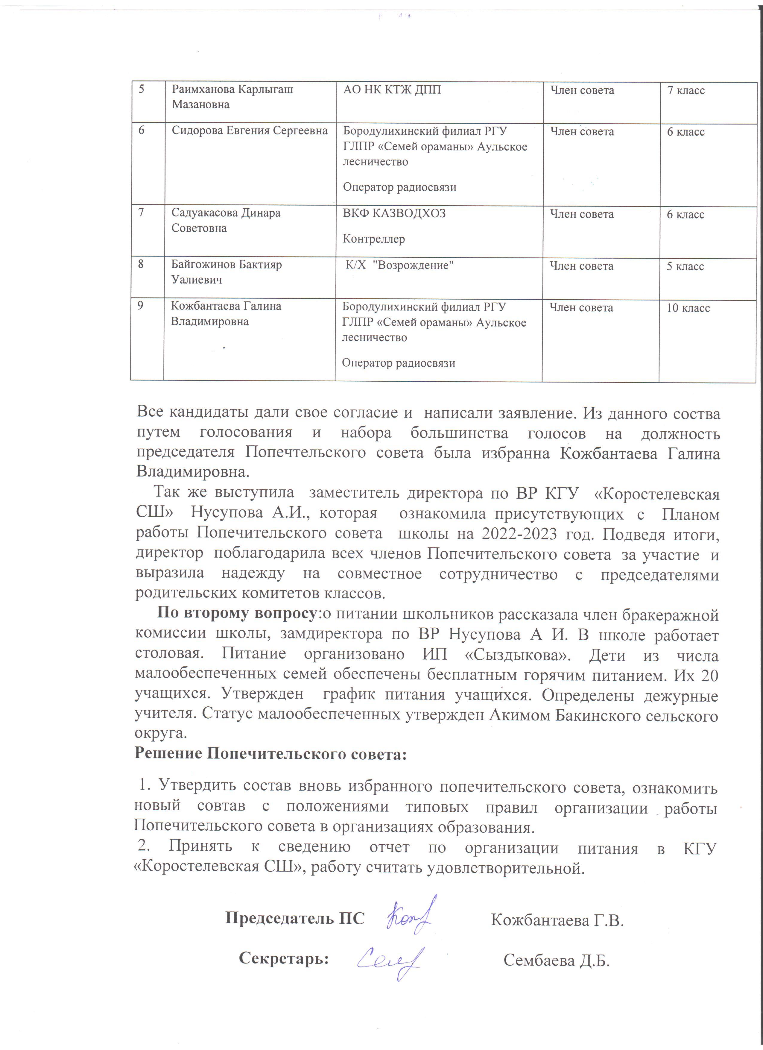 Протокол заседания Попечительского совета за IV квартал 2022 г. » КГУ «Коростелевская средняя школа»