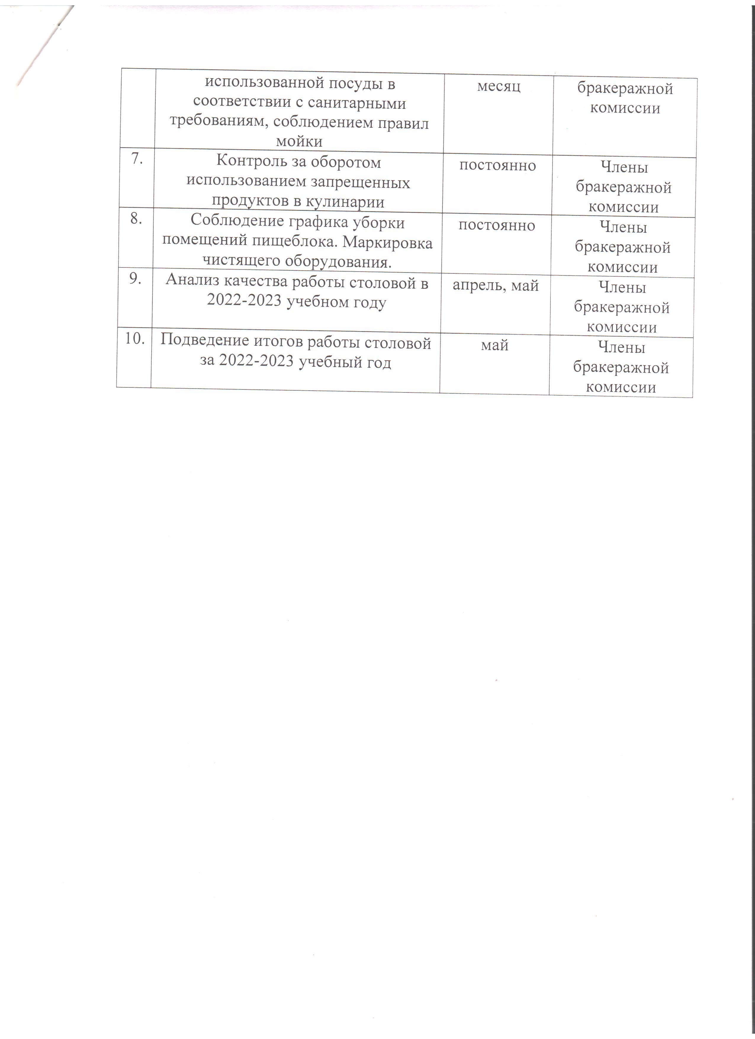 КГУ «Коростелевская средняя школа» » Питание » План работы школьной комиссии по мониторингу качества организации горячего питания в столовой КГУ "Коростелевская СШ" на 2022-2023 учебный год