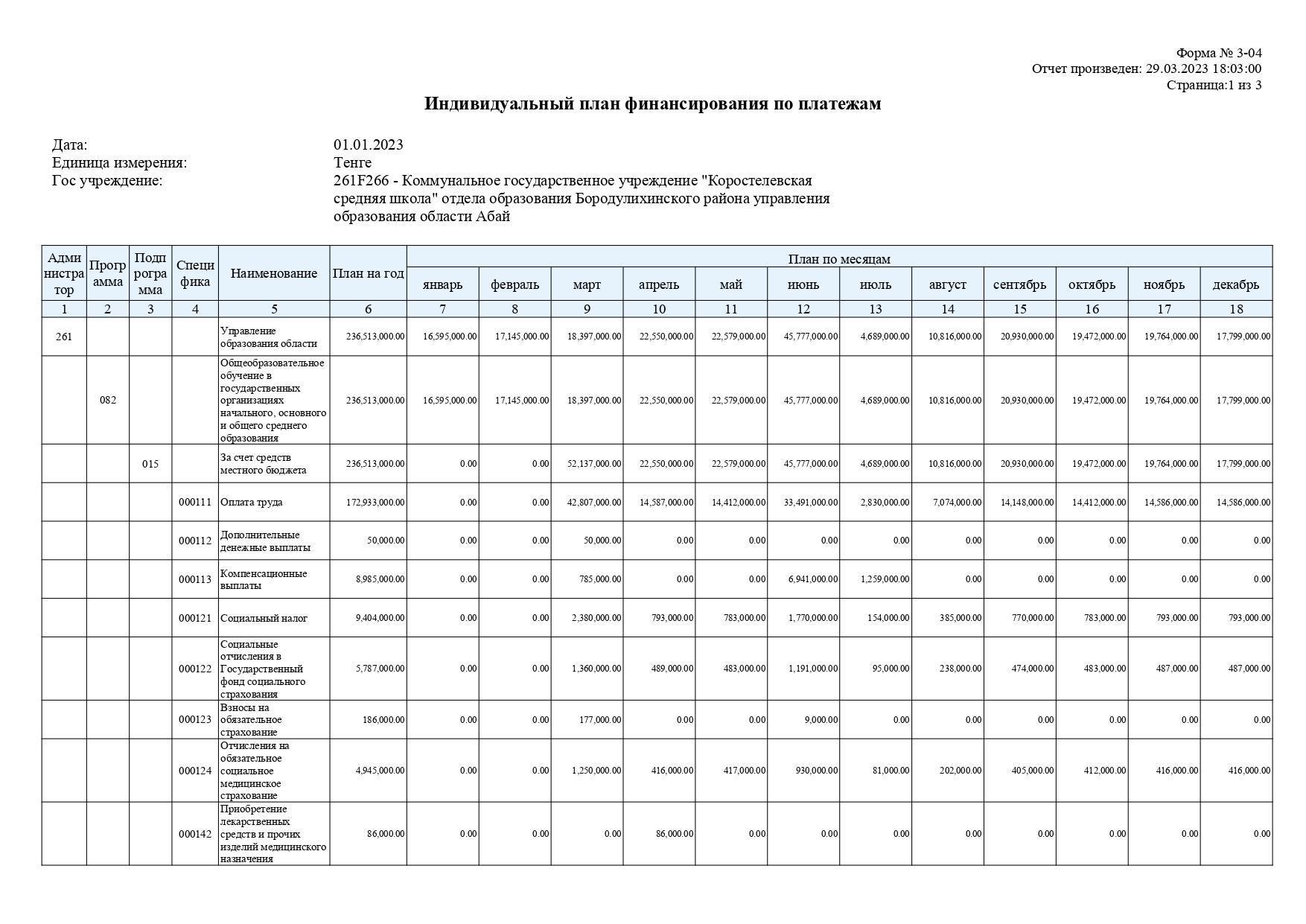 Индивидуальный план финансирования по платежам » КГУ «Коростелевская средняя школа»